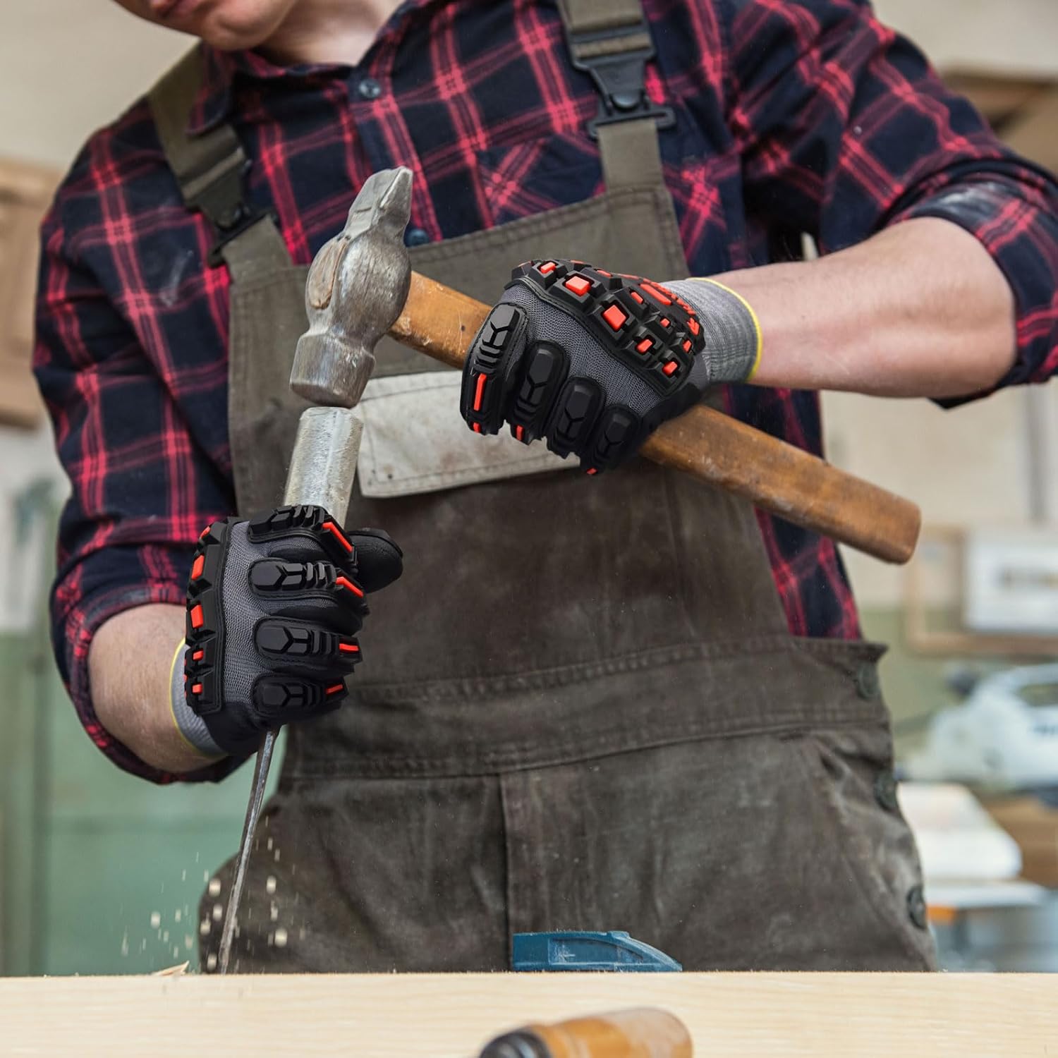 - TPR Impact Protection: Our work gloves feature TPR (Thermoplastic Rubber) padding on the back, providing superior impact protection to meet EN388 standards. The TPR material absorbs and disperses impacts and bumps, safeguarding hands without sacrificing flexibility or dexterity