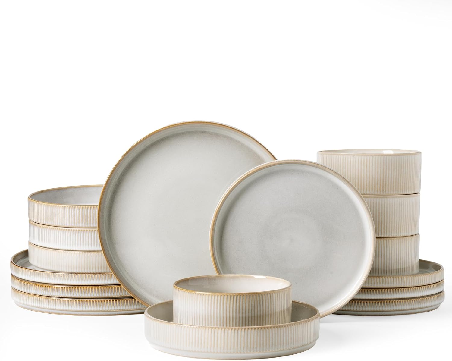 - [Everyday dinnerware]: Our premium stoneware dinnerware crafted from organic and natural clay, is LEAD-FREE and CADMIUM-FREE. It ensures safety for both your family and the environment. You can savor all kinds of meals, including steaks, salads, and desserts, with complete confidence