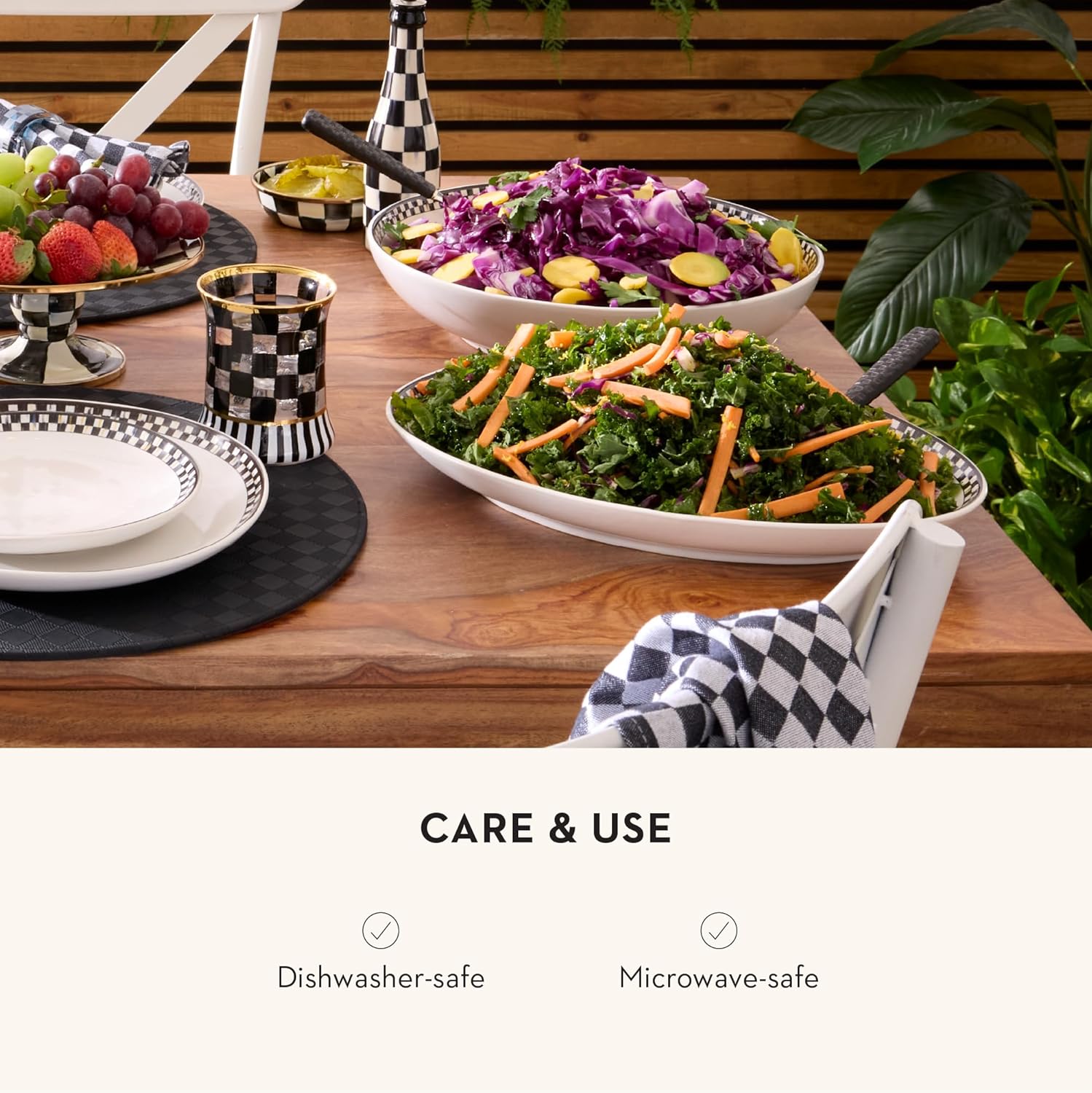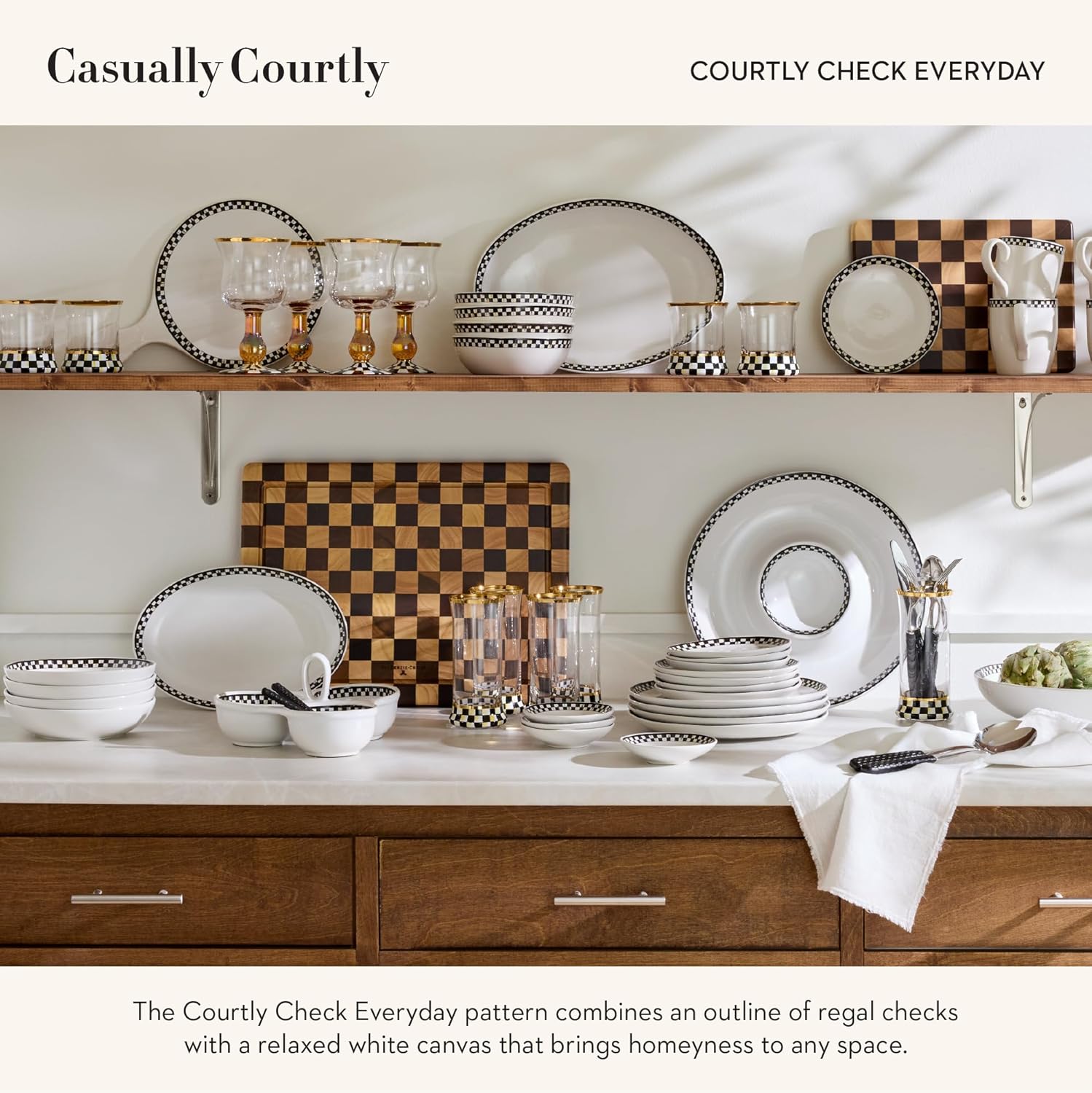 - ELEGANT SERVING ESSENTIALS: Each Courtly Check Everyday stoneware platter is dishwasher-safe and microwave-safe. The classic white body is rimmed with hand-applied black-and-white Courtly Check transfers.