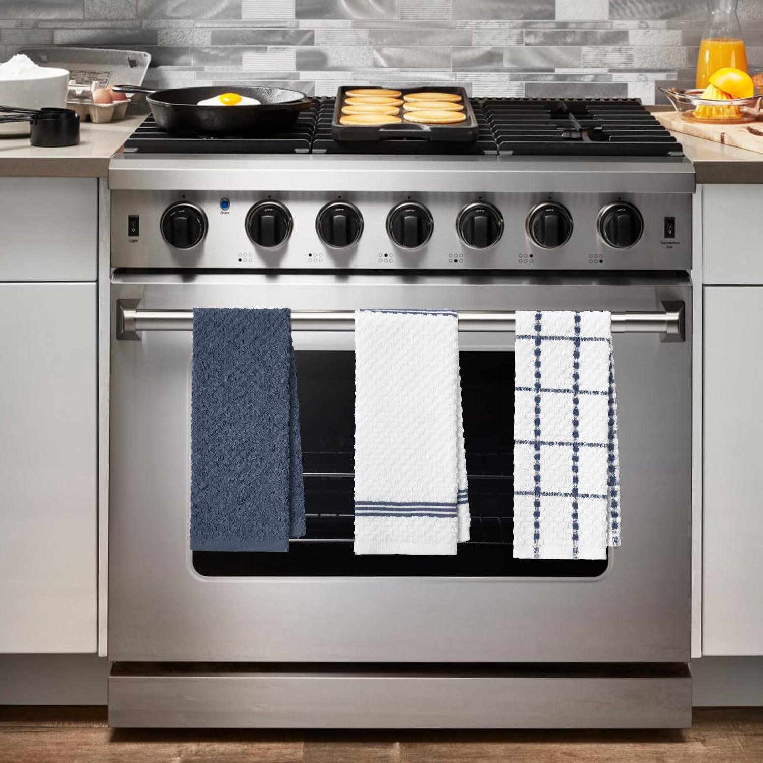 Artoid Mode Ring Spun Cotton Blue Kitchen Dish Towels, 15x25 Inch Ultra Soft Absorbent Quick Drying Household Cleaning Tea Towels Bar Towels Set of 6