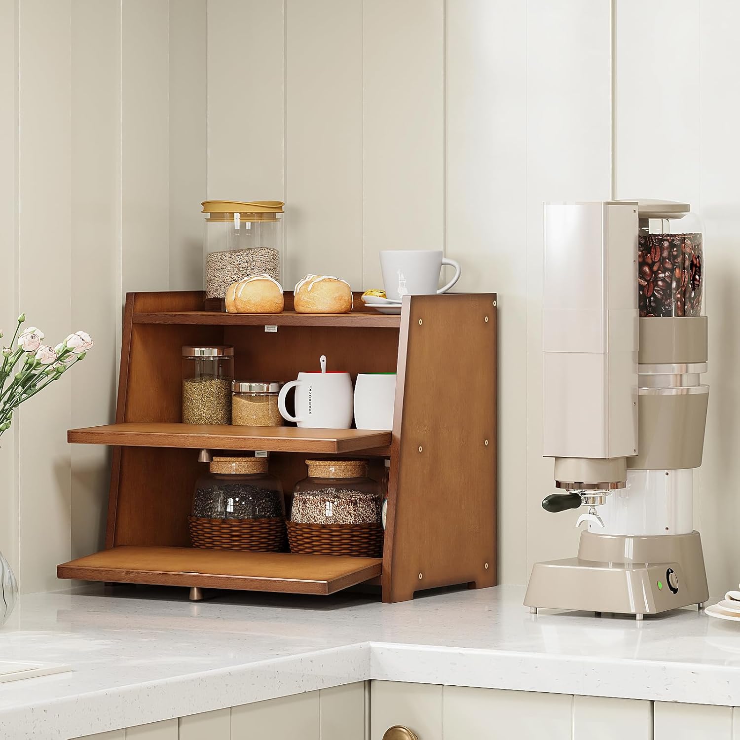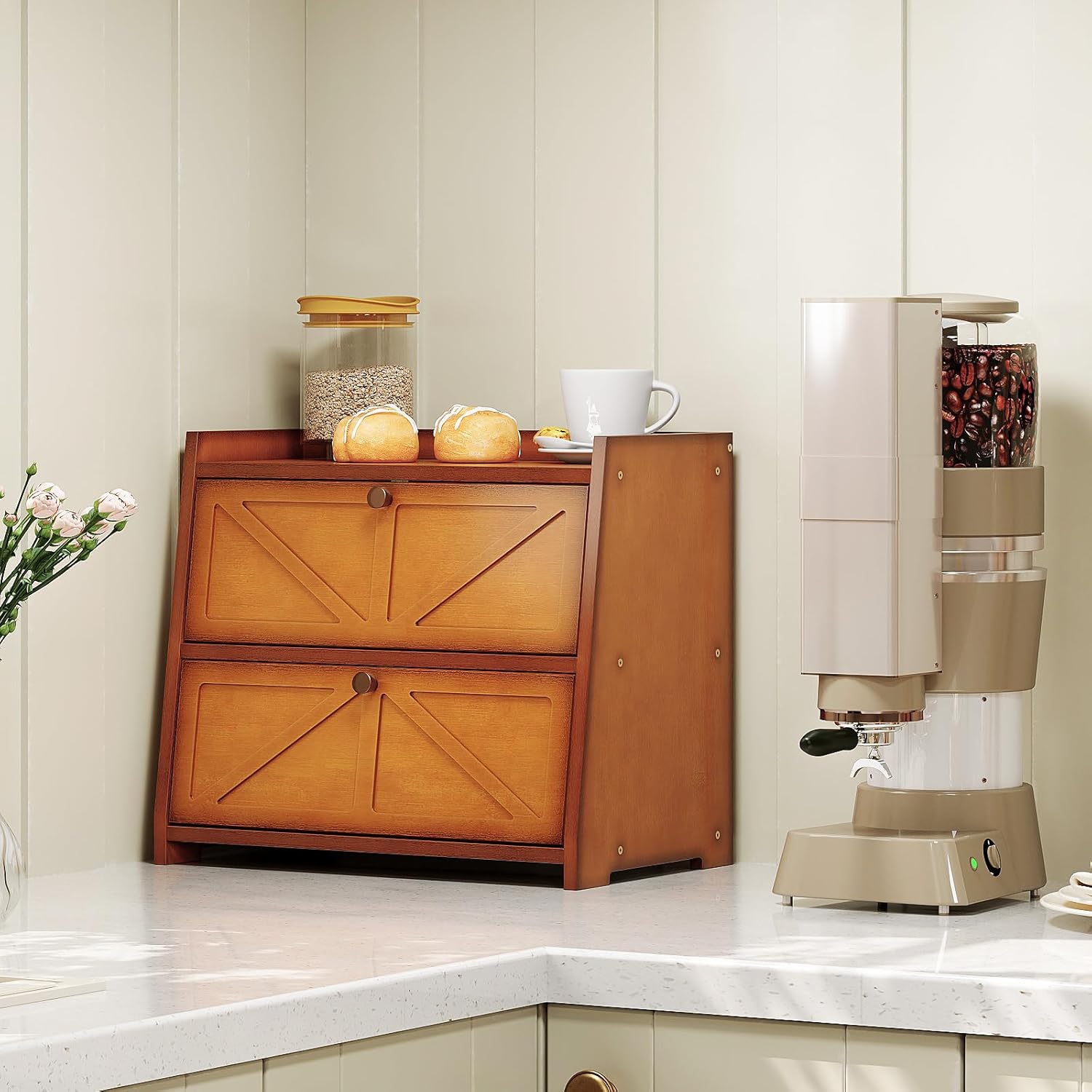 Vintage Double Layer Bread Box for Kitchen Counter Bamboo Bread Storage Container Large Capacity Bread Storage Bin