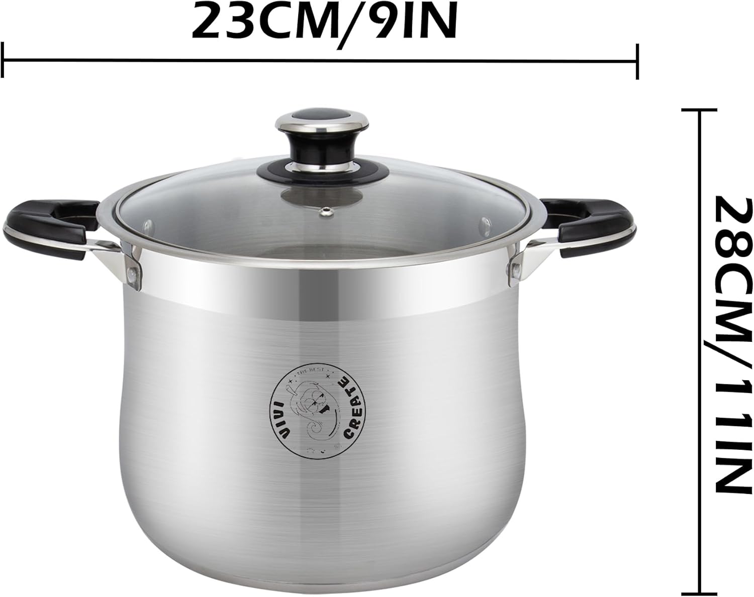 Vivicreate Stainless Steel Stock Pot with Lid for Induction Cooking Boiling Pasta Stew Soup Large Capacity Cookware with Handles for Kitchen Spaghetti Olla Olla de Acero Inoxidable (14.5 QT)