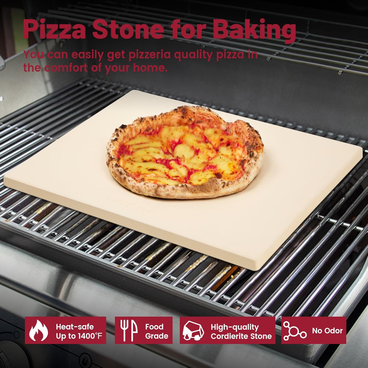 - ROCKSHEAT pizza stone provides ample space and is ideal for baking multiple large pizzas, breads, cookies and pastries at once. Perfect for industrial, commercial, home ovens and grills. Whether you're hosting a pizza party or simply enjoying a homemade pizza night with your loved ones, this pizza stone is a must-have.