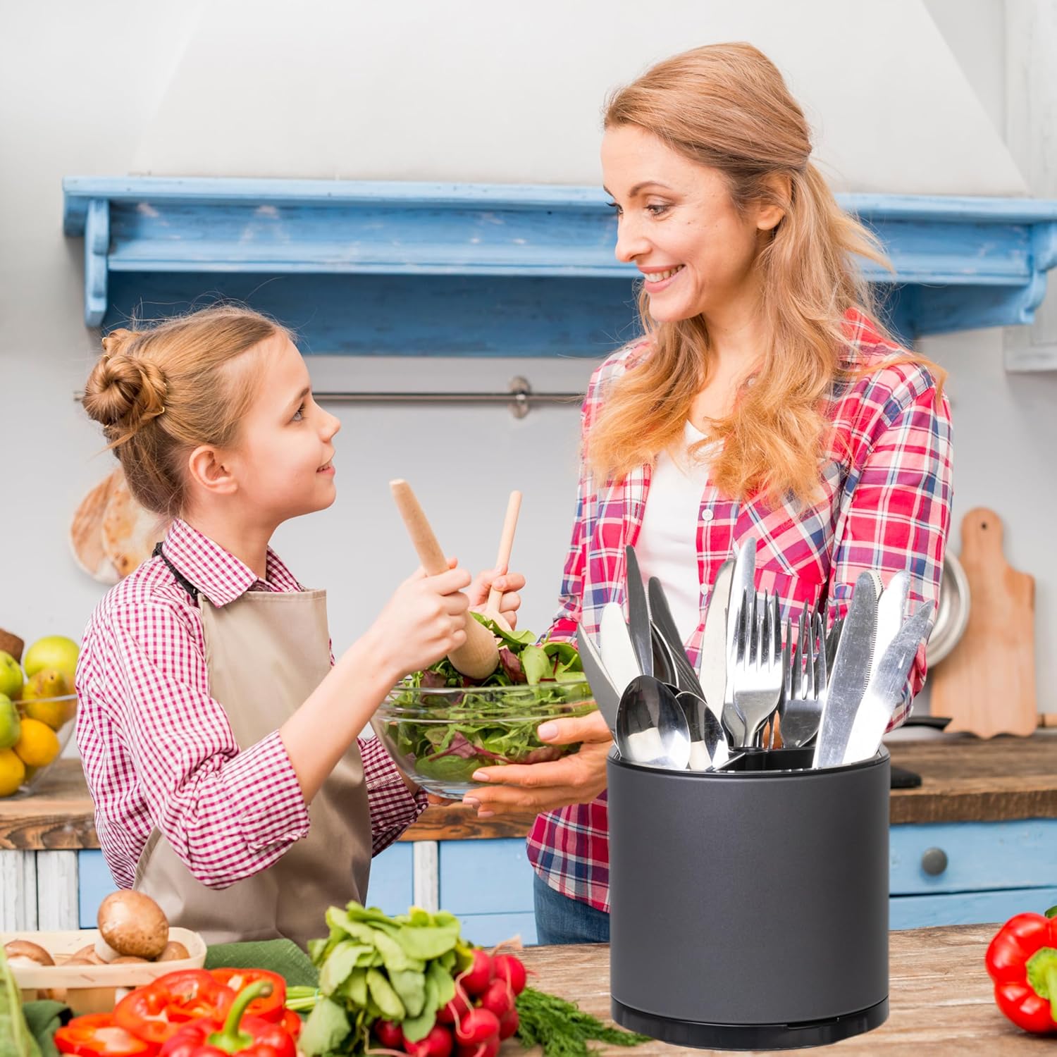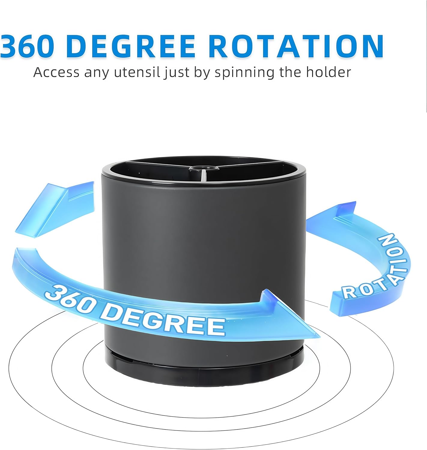 - Smooth 360Β° Rotation: Experience unparalleled convenience with our smooth-gliding, 360-degree rotation feature. Simply spin the holder to access any utensil you need, eliminating the frustration of searching through a tangled mess. This innovative design ensures that your utensils are always within easy reach, making your kitchen tasks more efficient and enjoyable.
