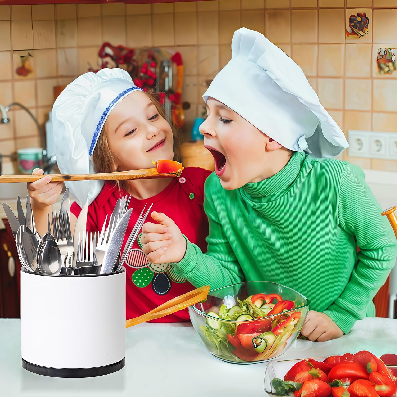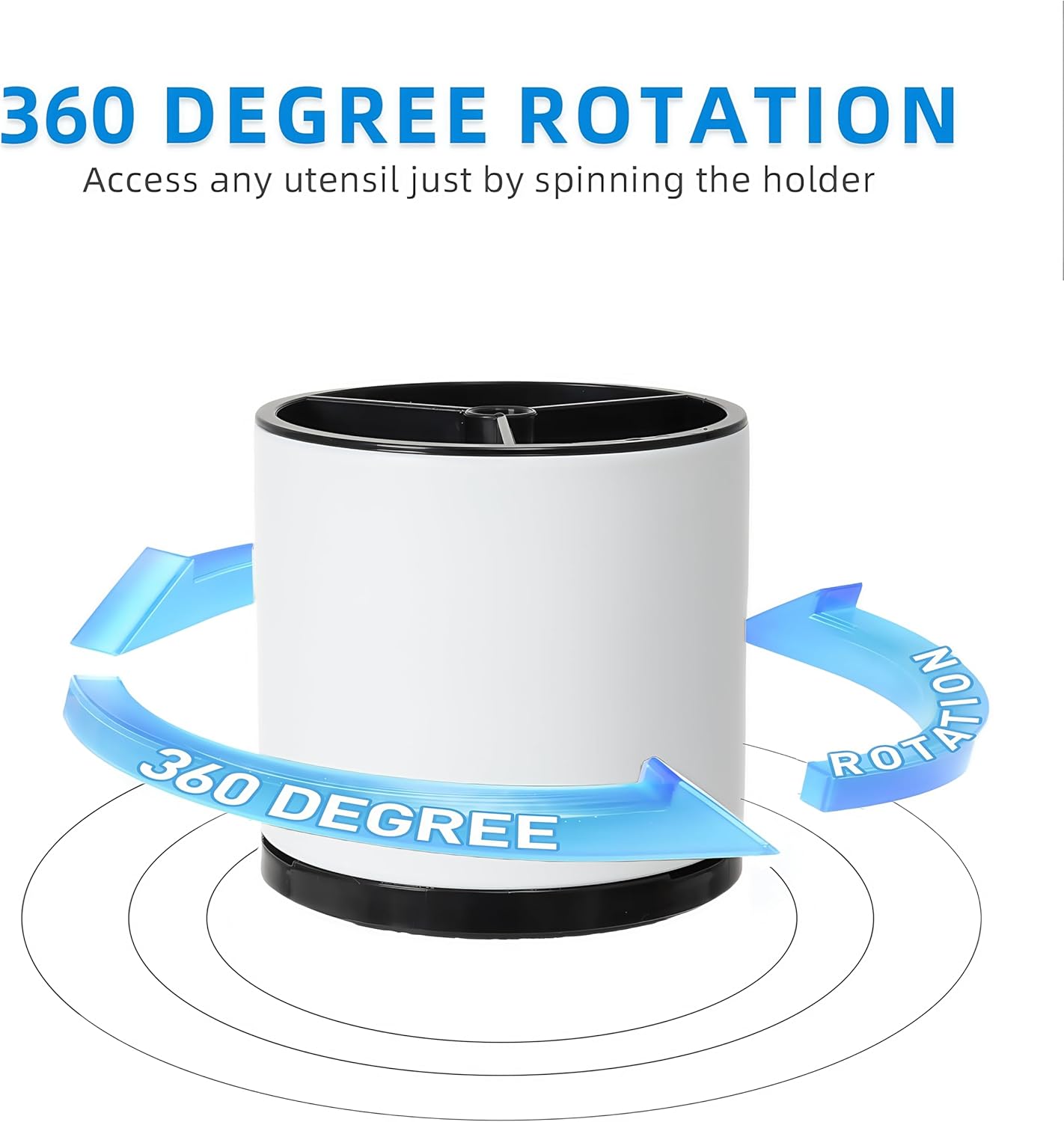 - Smooth 360Β° Rotation: Experience unparalleled convenience with our smooth-gliding, 360-degree rotation feature. Simply spin the holder to access any utensil you need, eliminating the frustration of searching through a tangled mess. This innovative design ensures that your utensils are always within easy reach, making your kitchen tasks more efficient and enjoyable.