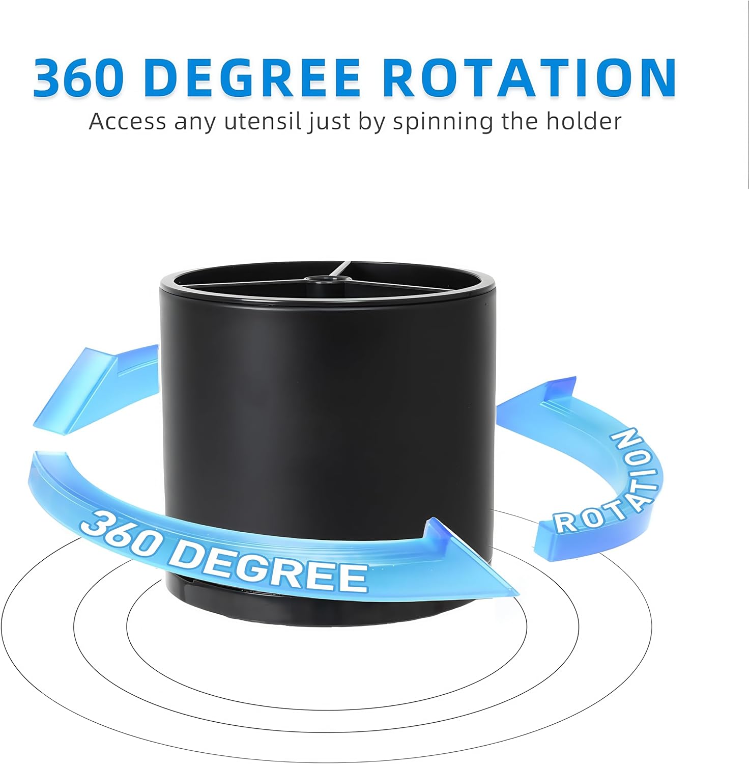 - Smooth 360Β° Rotation: Experience unparalleled convenience with our smooth-gliding, 360-degree rotation feature. Simply spin the holder to access any utensil you need, eliminating the frustration of searching through a tangled mess. This innovative design ensures that your utensils are always within easy reach, making your kitchen tasks more efficient and enjoyable.