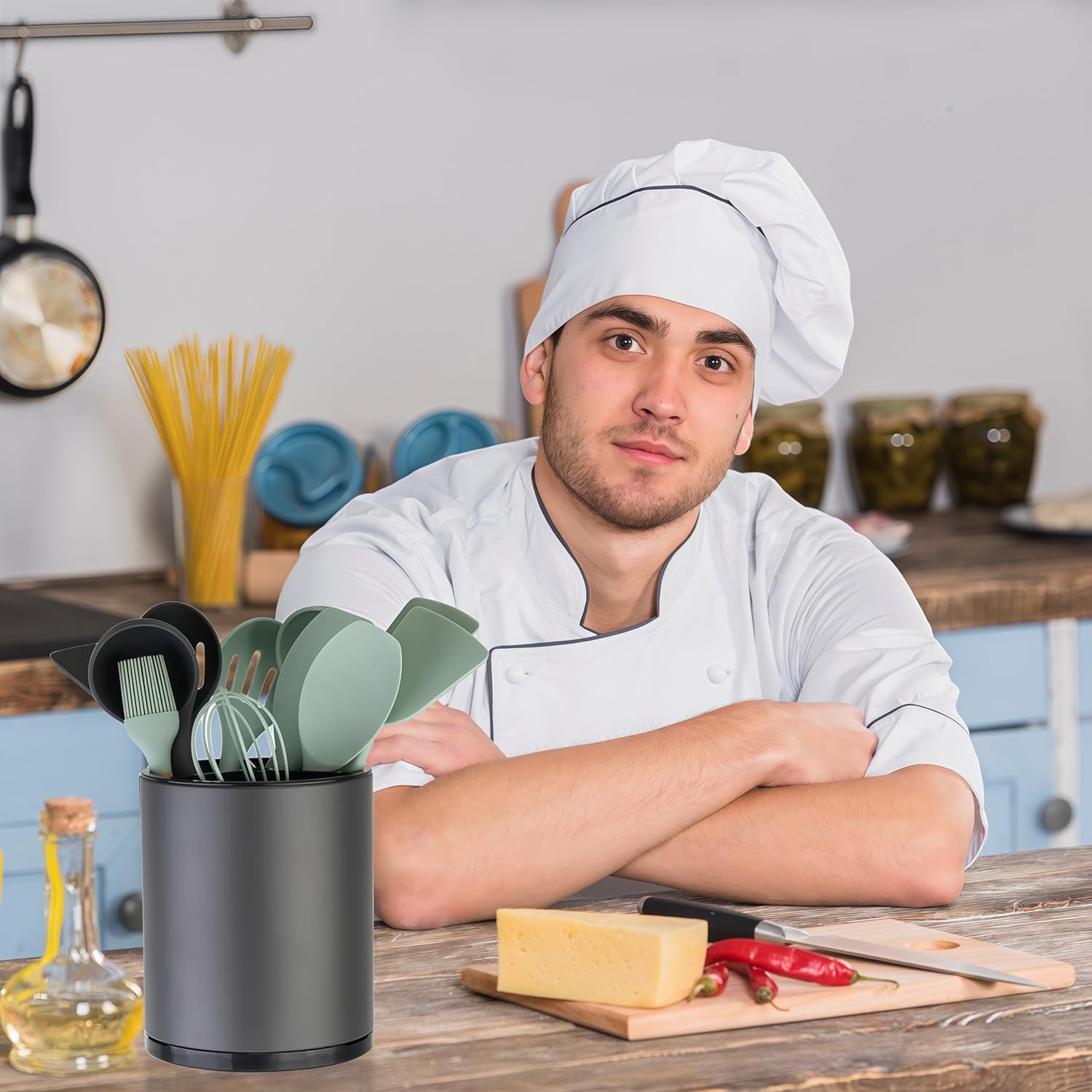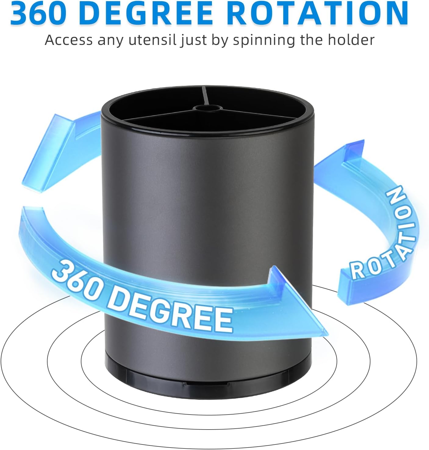 - Smooth 360Β° Rotation: Experience unparalleled convenience with our smooth-gliding, 360-degree rotation feature. Simply spin the holder to access any utensil you need, eliminating the frustration of searching through a tangled mess. This innovative design ensures that your utensils are always within easy reach, making your kitchen tasks more efficient and enjoyable.