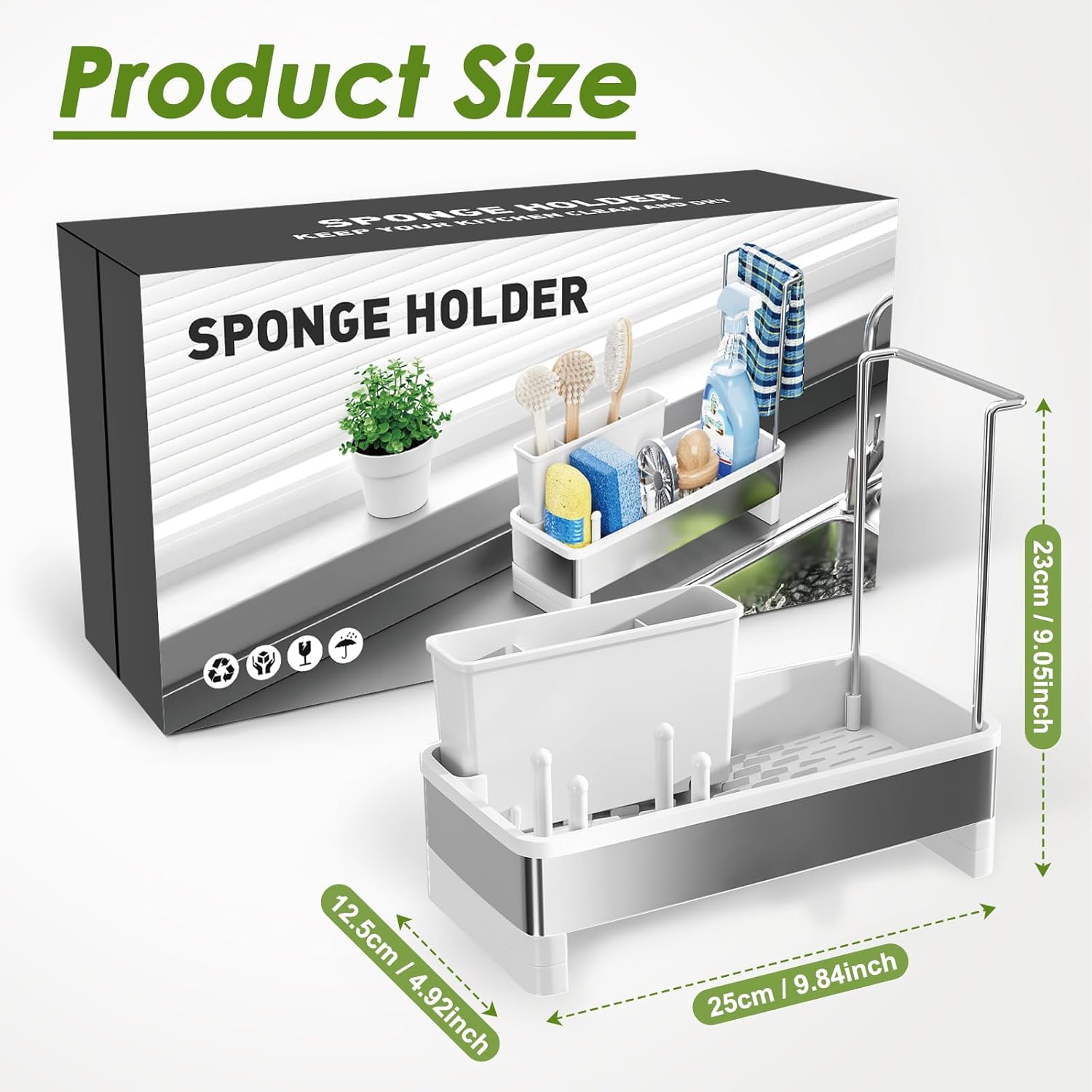 - ăRemovable Brush Holder & Dish Cloth HangerăIt not only serves as a sink sponge holder, but also comes with a removable brush holder that can accommodate brushes of different sizes. It also features a towel rack that allows your dish towels to hang and dry easily. Our sink caddy allows you to organize and store kitchen cleaning supplies more efficiently, saving space in your kitchen.