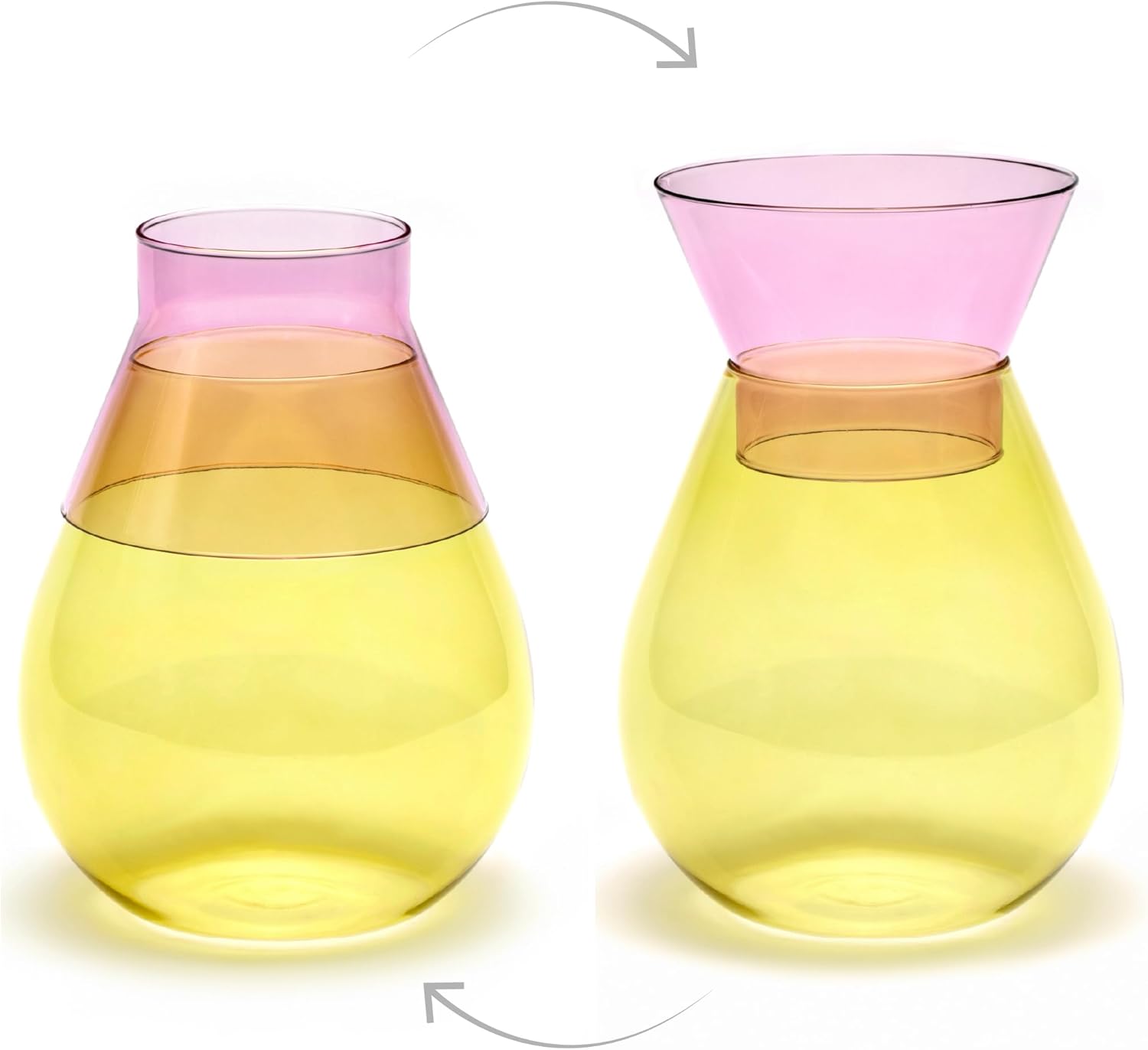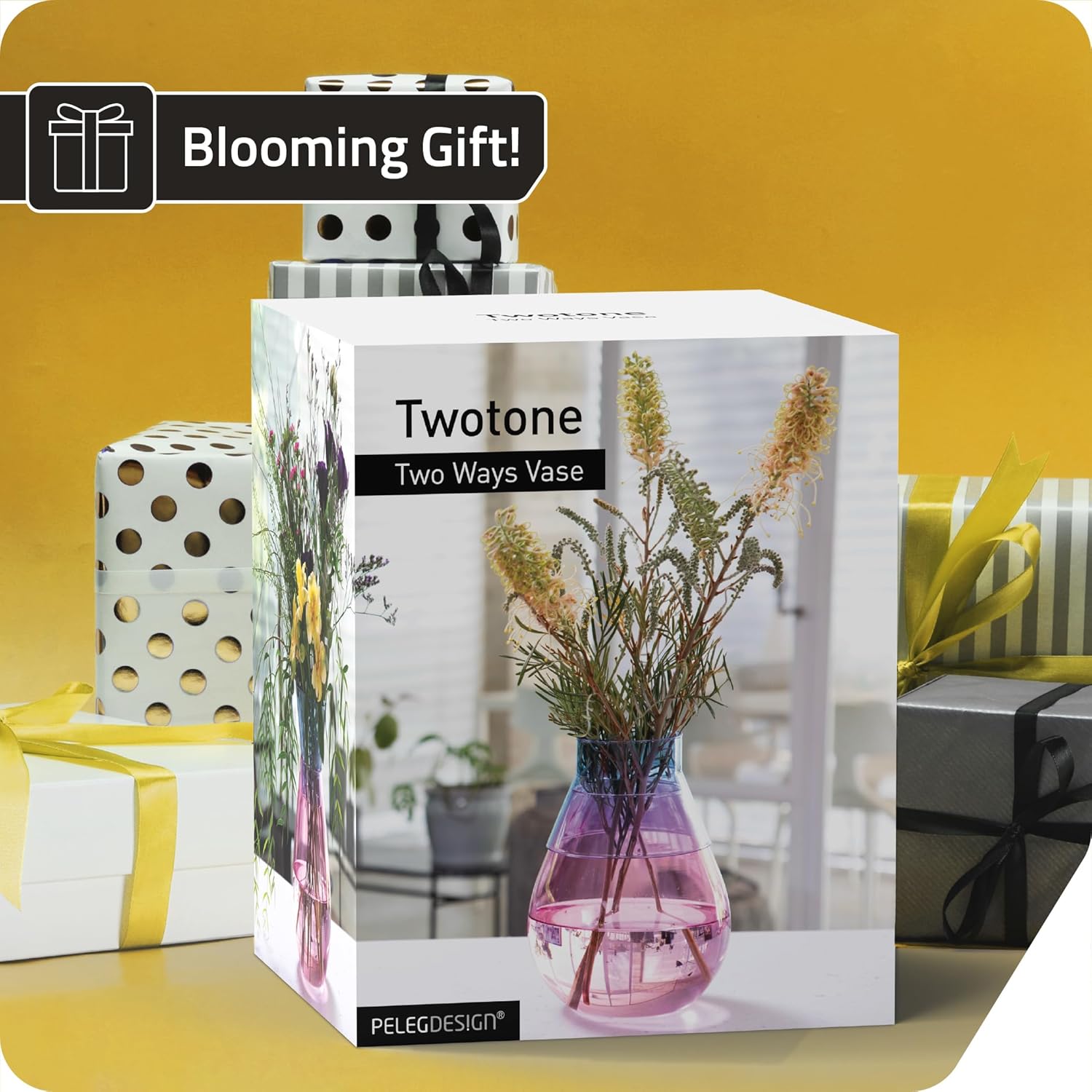 Peleg Design Twotone Home Décor in 3 Colors - Round Glass Vase for Flower Bouquets - Decorative Vase with Flippable Top - Glass Vases for Centerpieces