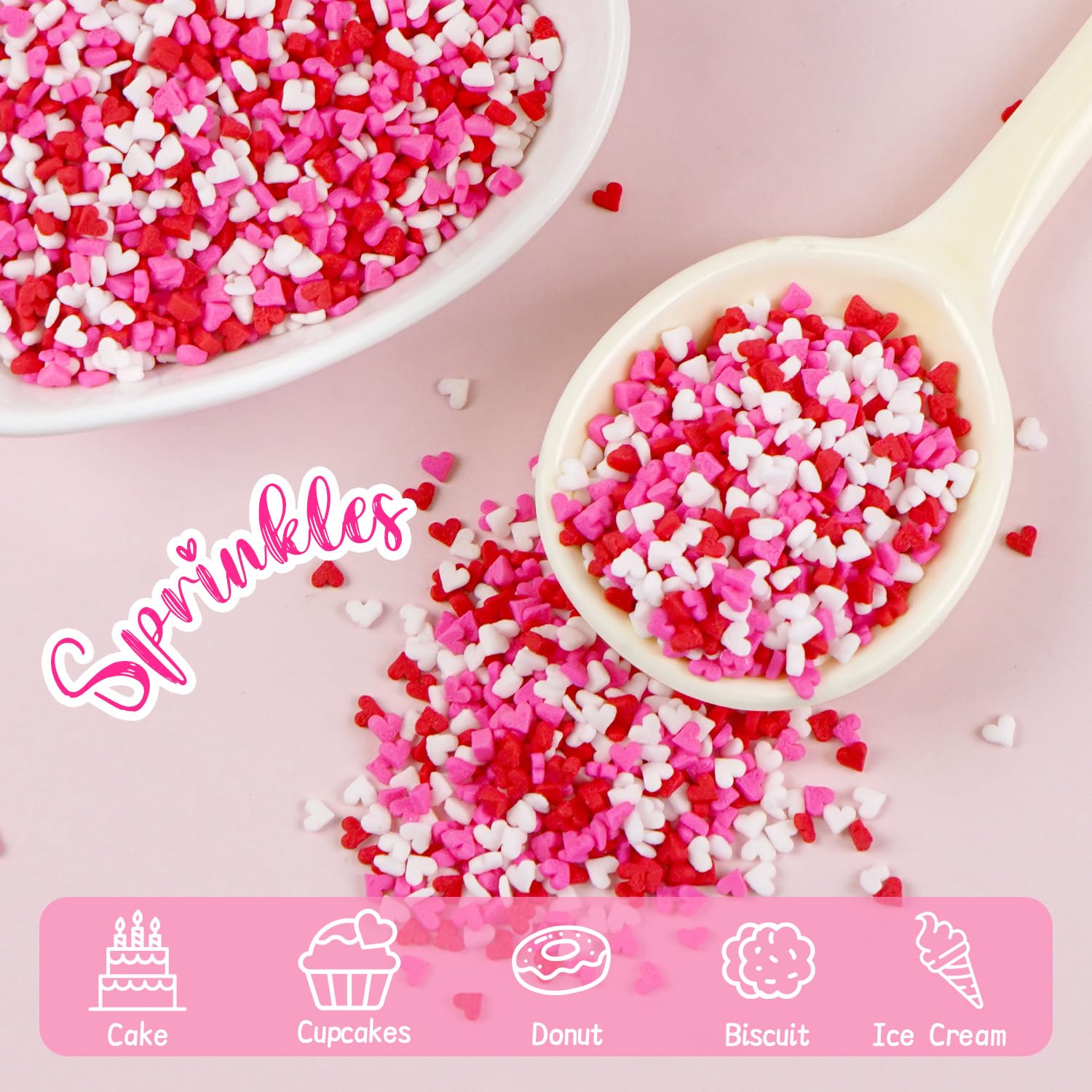 Sweet Mini Heart Sprinkles Sugar, Valentines Love Sprinkles for Cupcake Decorating, 150g/5.29oz Mix Edible White Pink and Red Candy, Cookie, Ice Cream, Mother's Day, Wedding Party Supplies
