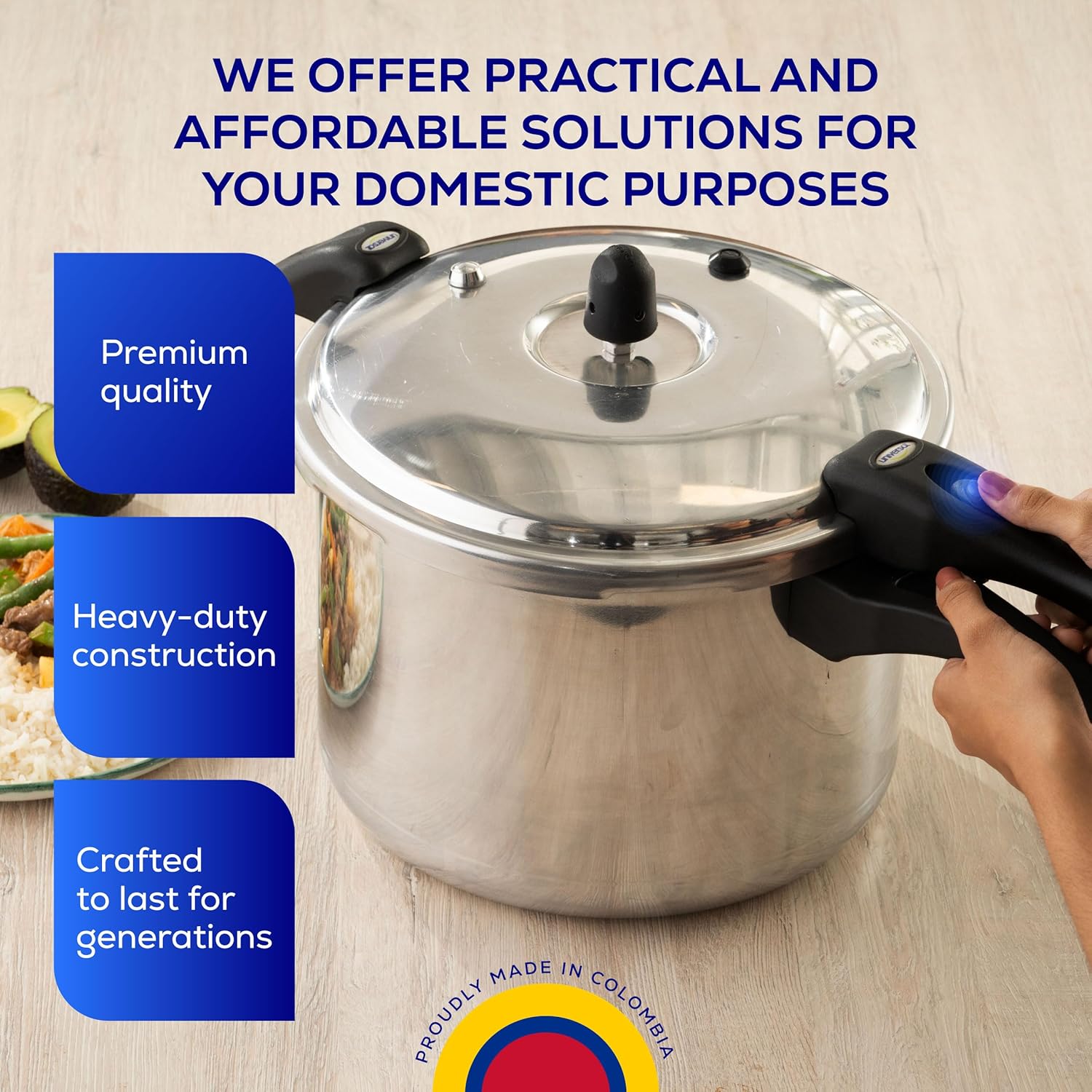 - โ Premium Colombian Craftsmanship โ 25-Year Warranty: Engineered for lifelong durability, this heavy-duty Universal pressure cooker is proudly made in Colombia. Built with superior materials and craftsmanship, it comes with an industry-leading 25-year warranty, ensuring reliability for decades to come.
