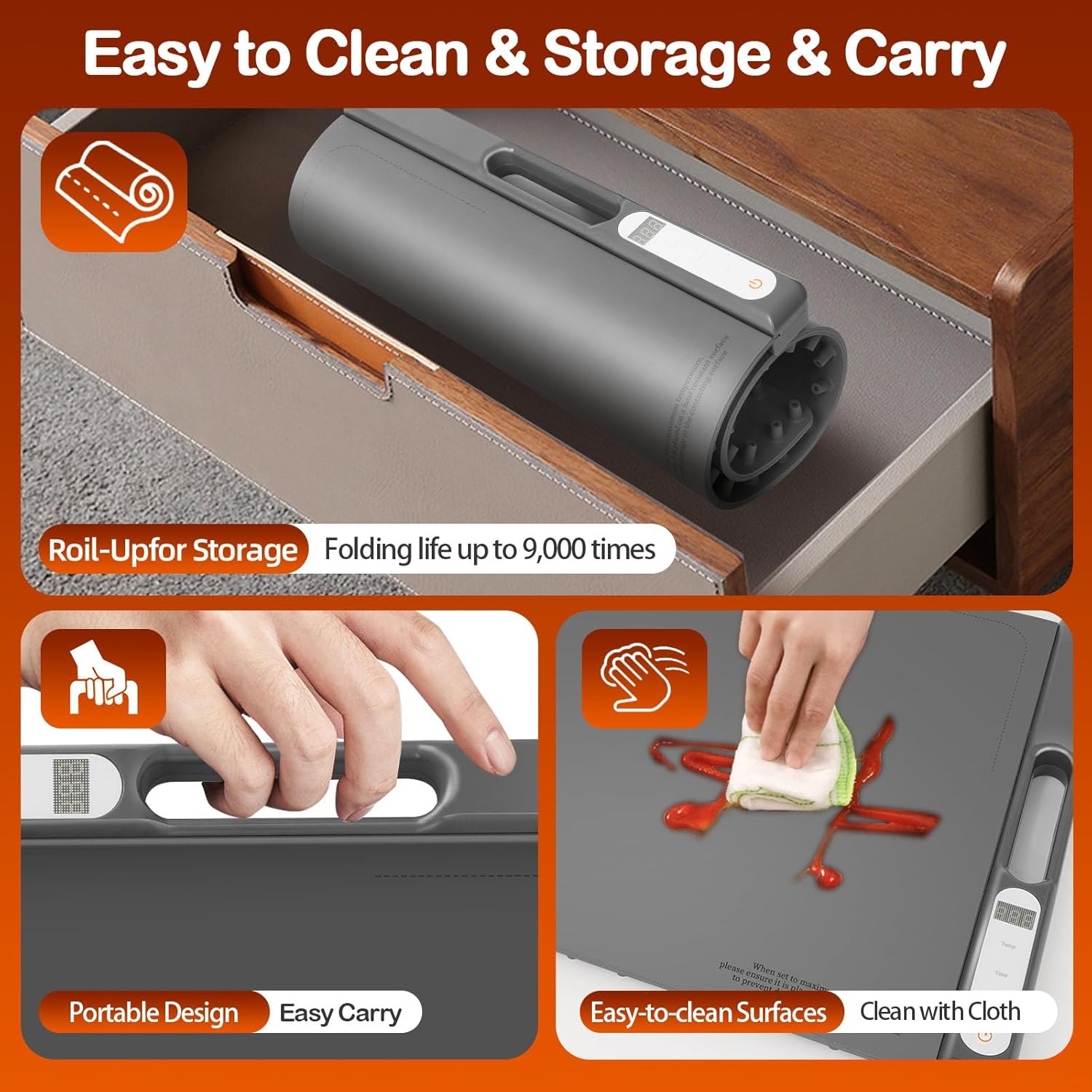- [Portable/Easy to Clean/Space Saving] The electric blanket is made of high quality flexible silicone material molded in one piece, which can be easily rolled up to save space and durable, and the waterproof silicone structure is easy to clean. Carrying handle design makes you more convenient to carry.