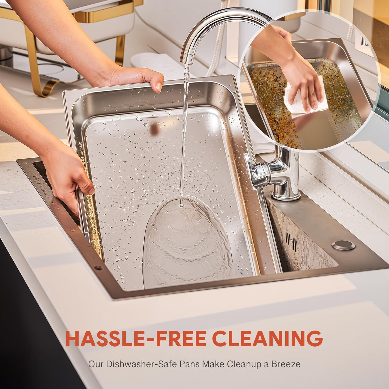 - Easy to Use & Maintain: The scald resistant handles provide comfortable and sure grips to let you move dishes around with great ease, while the dishwasher-safe pans and lids make cleanup a breeze