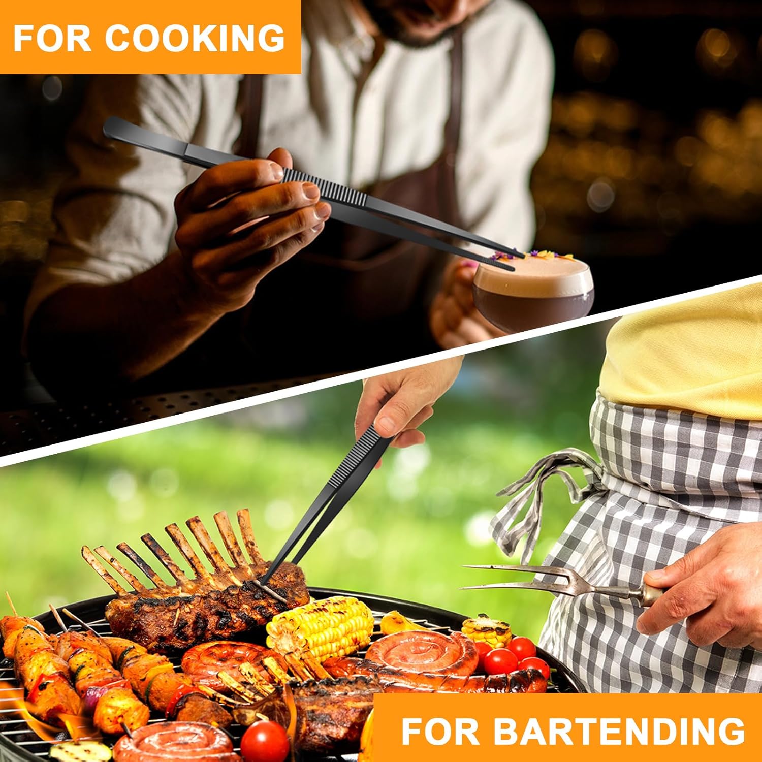 - Multipurpose Tweezers: the black steel tweezer measures about 12 inch/ 30 cm, this stainless steel cookware is great along with other kitchen supplies, also good for culinary, beauty, electrical repairing, purpose and crafting