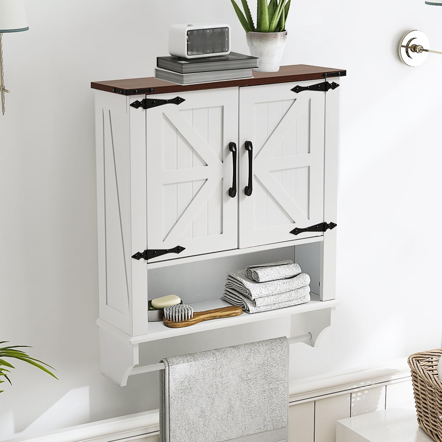 JOMEED Bathroom Wall Cabinet, Farmhouse Medicine Cabinet Storage with Doors and Adjustable Shelf, Over The Toilet Storage, White