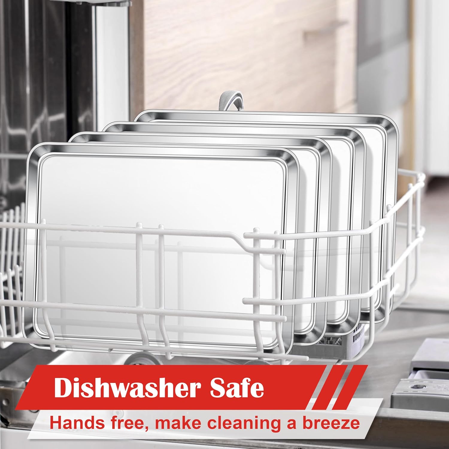 E-far Cookie Sheets Set of 4, 18”x13” Stainless Steel Baking Sheet Pans for Oven, Large Non Toxic Metal Baking Tray for Baking Roasting, Healthy & Rust Free, Mirror Finish & Dishwasher Safe