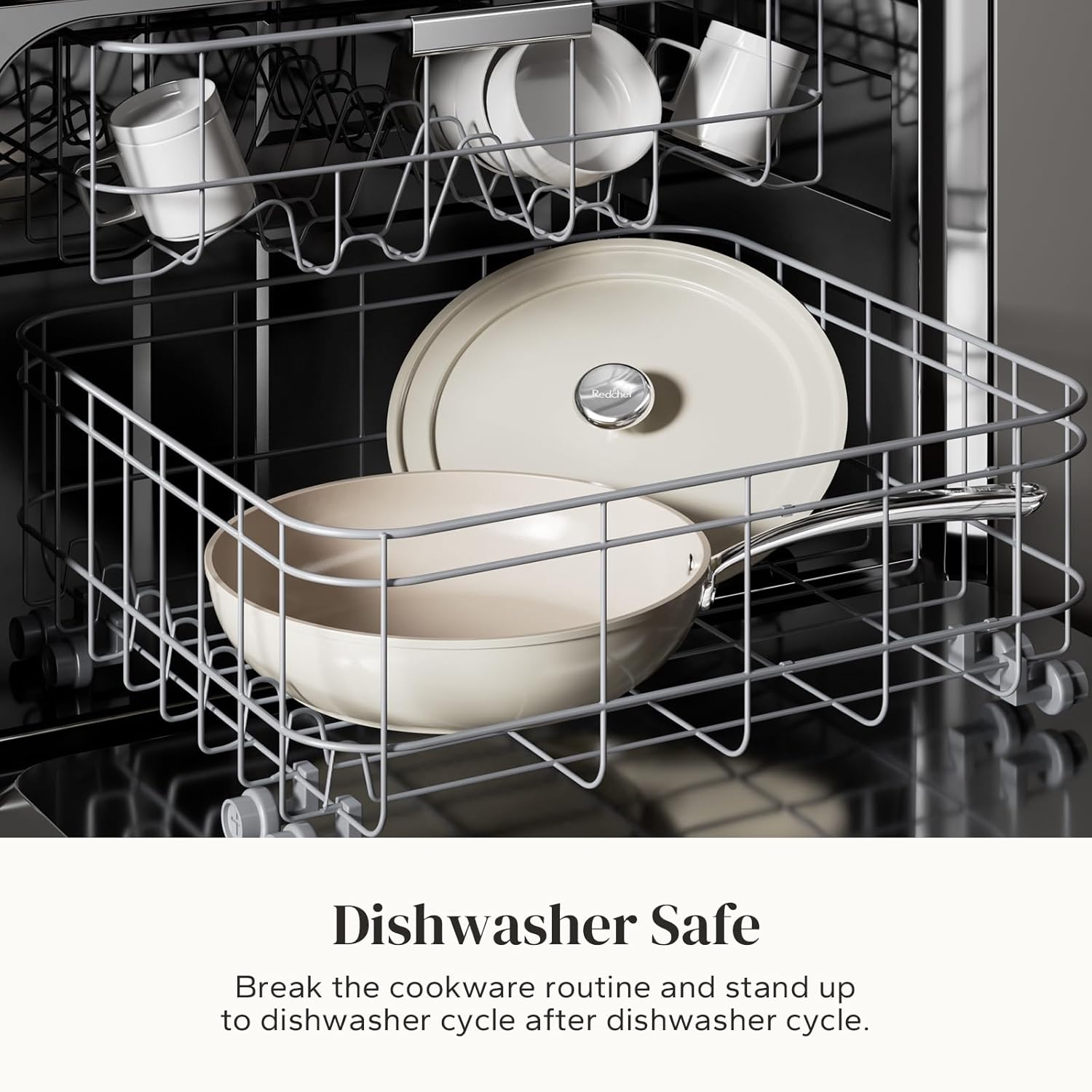 Redchef Nonstick Frying Pans Set, 4-Piece Ceramic Frying Pan, 8" 9.5" 11" Saute Pan Skillet, Non Toxic Ceramic Pan for Cooking, Pots and Pans, PFAS & PTFE & PFOA Free, Dishwasher & Oven Safe, Beige