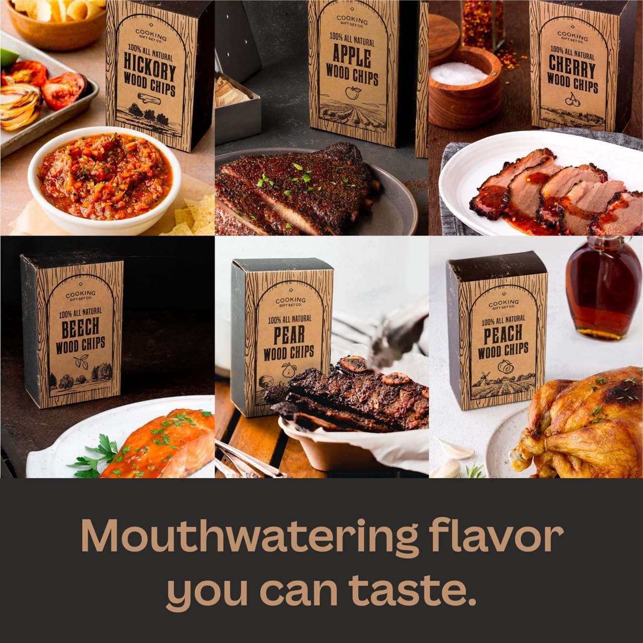 Large Wood Smoking Chips for Smoker - 6 Flavor Variety Pack of Natural Wood Chips - Apple, Hickory, Cherry, Peach, Beech, and Pear - Grilling Accessories for Smoker Grill, Charcoal and Gas Grill