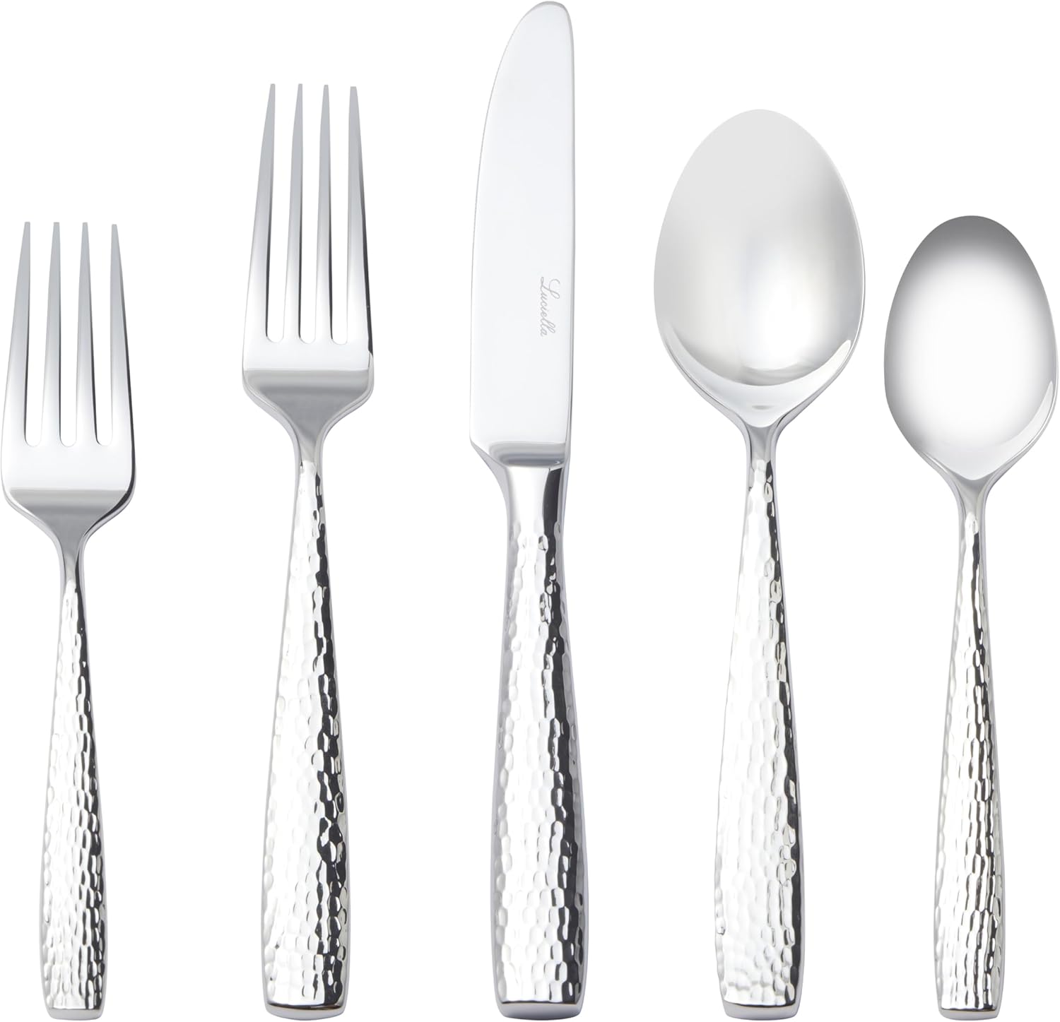 - Timeless Silverware Set with a Modern Twist: The Luciella Ponza Flatware Set for 12 features a stunning hammered silverware design with a brilliant mirror finish, perfect for both modern and classic table settings!