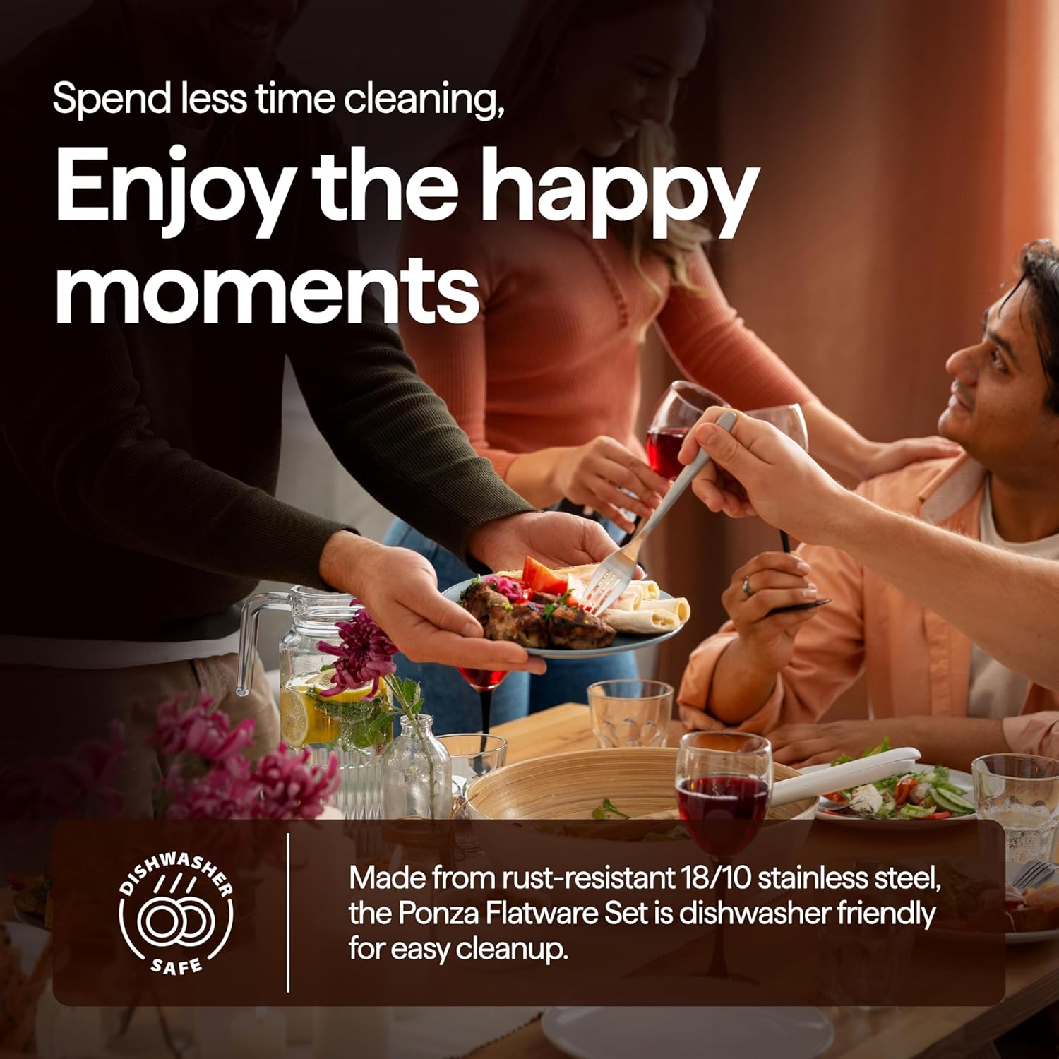 - Dishwasher Safe & Built to Last: Whether you're entertaining guests or enjoying a cozy family dinner, this dishwasher-safe silverware set makes mealtime cleanup so easy. Its high-quality, rust-resistant stainless steel ensures long-lasting durability, making it an excellent choice for both casual dining and formal settings.