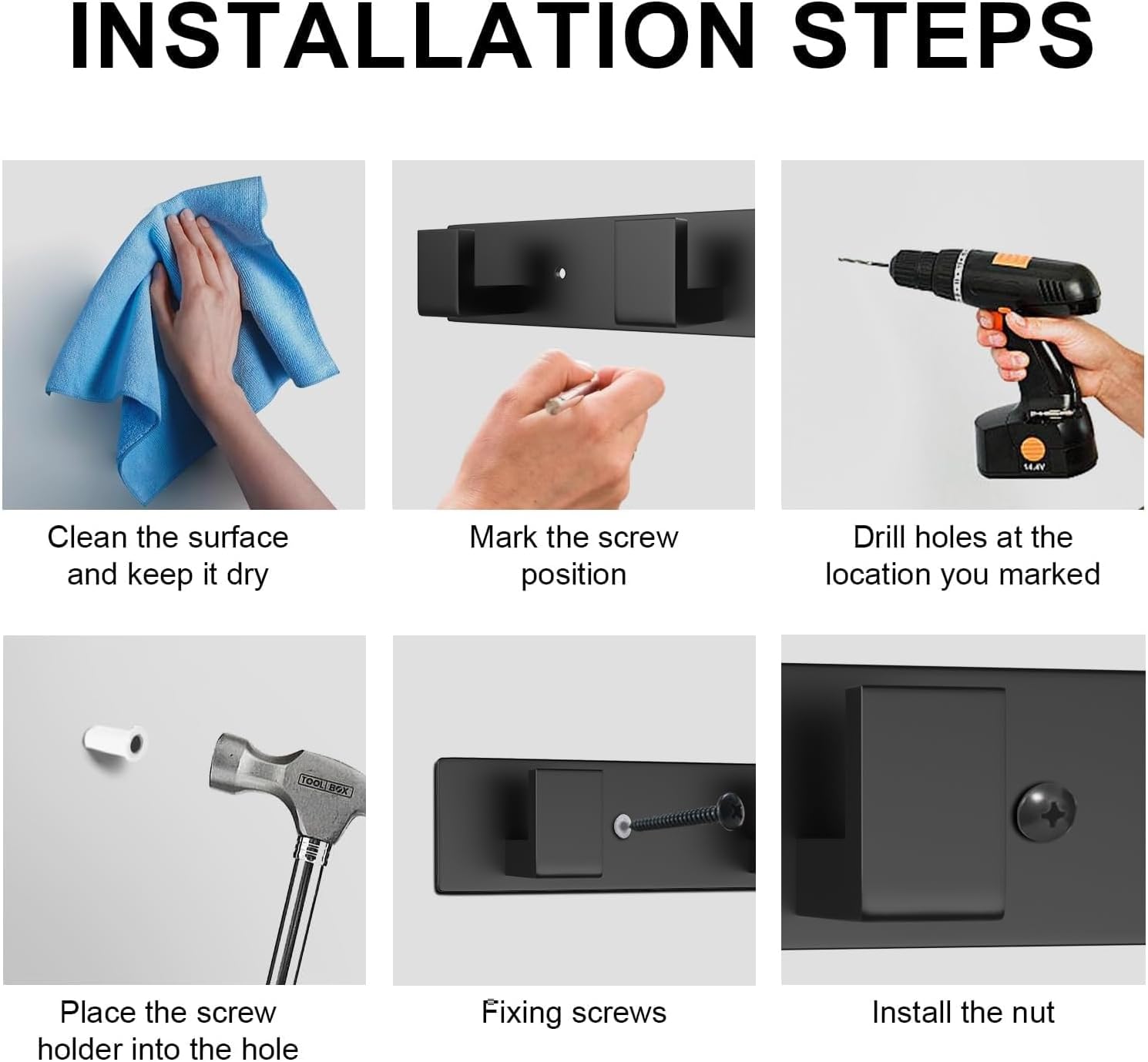 - Easy to install: Wall mounted hangers are easy to install on walls or wooden doors; The installation hardware includes screws, plastic expansion anchors, and washers