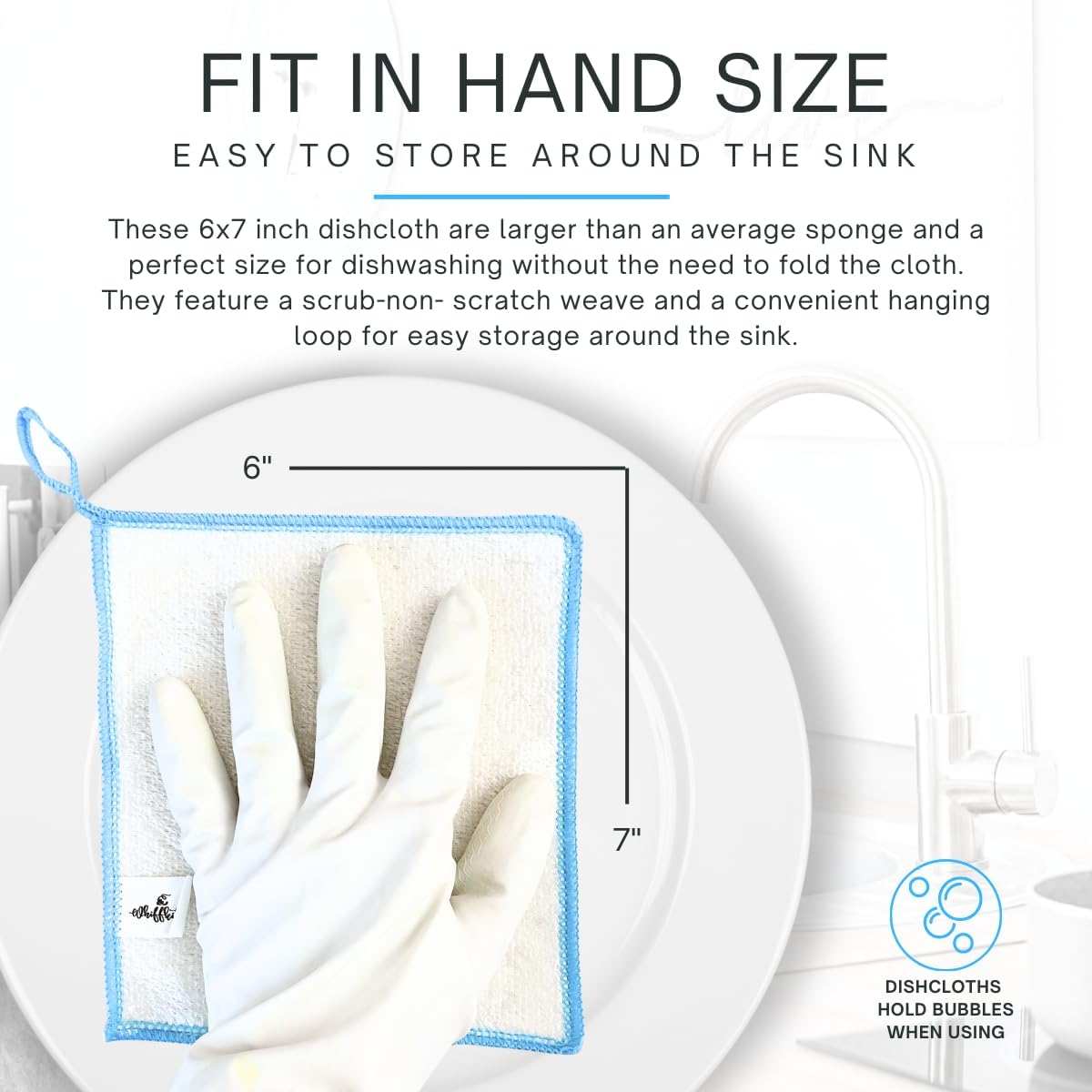 - QUALITY COUNTS: Our Whiffkitch Dish Cloths & Cleaning Cloths are not just absorbent; they're also reusable and long lasting. At 6x7 inches, these 2-ply thick reusable, quick-drying, hygienic, and durable kitchen dishcloths set the standard for cleanliness and sustainability in any kitchen, making them essential for washing dishes and more.