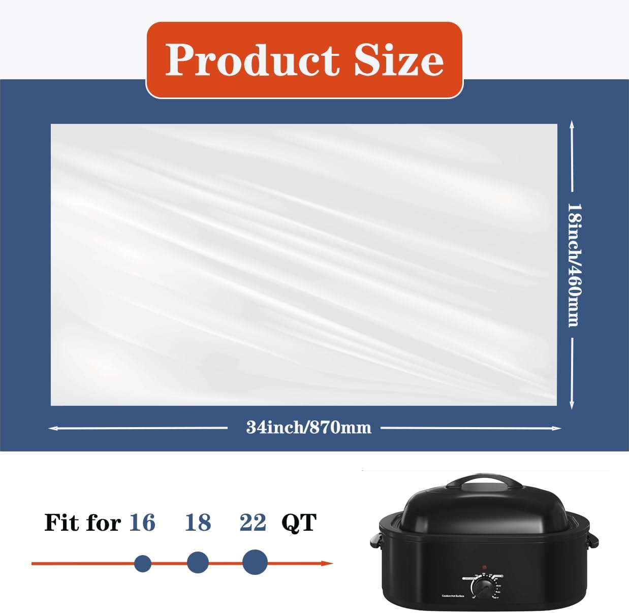 - 5.Universal Fit for Large Roasters β Measuring 18x34 inches, these liners are compatible with 16, 18, and 22-quart electric roasters. Use two liners at once to cook separate dishes in the same roaster!
