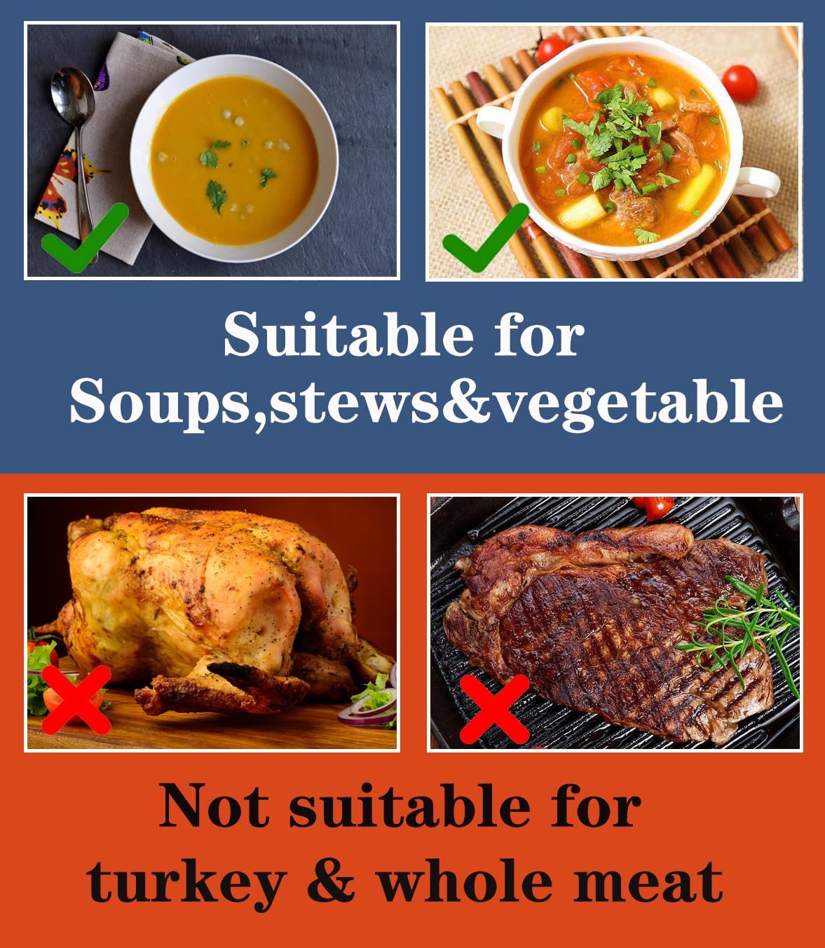 - 4.For Stews & Casseroles β Designed for stews, casseroles, and chili, these liners are not suitable for whole meats like chicken, turkey, or steak. To prevent melting, add water to the roasting pan and preheat for 3 minutes before use.