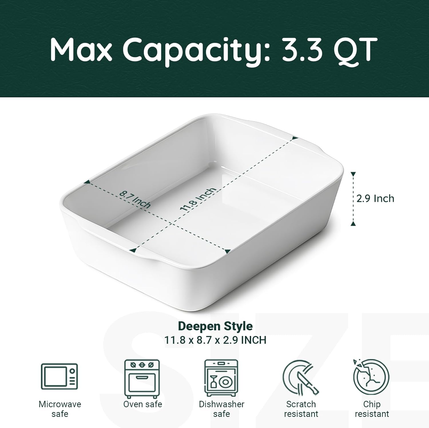 3.3 QT Ceramic Baking Dish, White Casserole Dish,Lasagna Pan for Oven, Bakeware for Baking, Kitchen Decor, Microwave Oven Safe, Dinner Party (8.7" x 11.8")