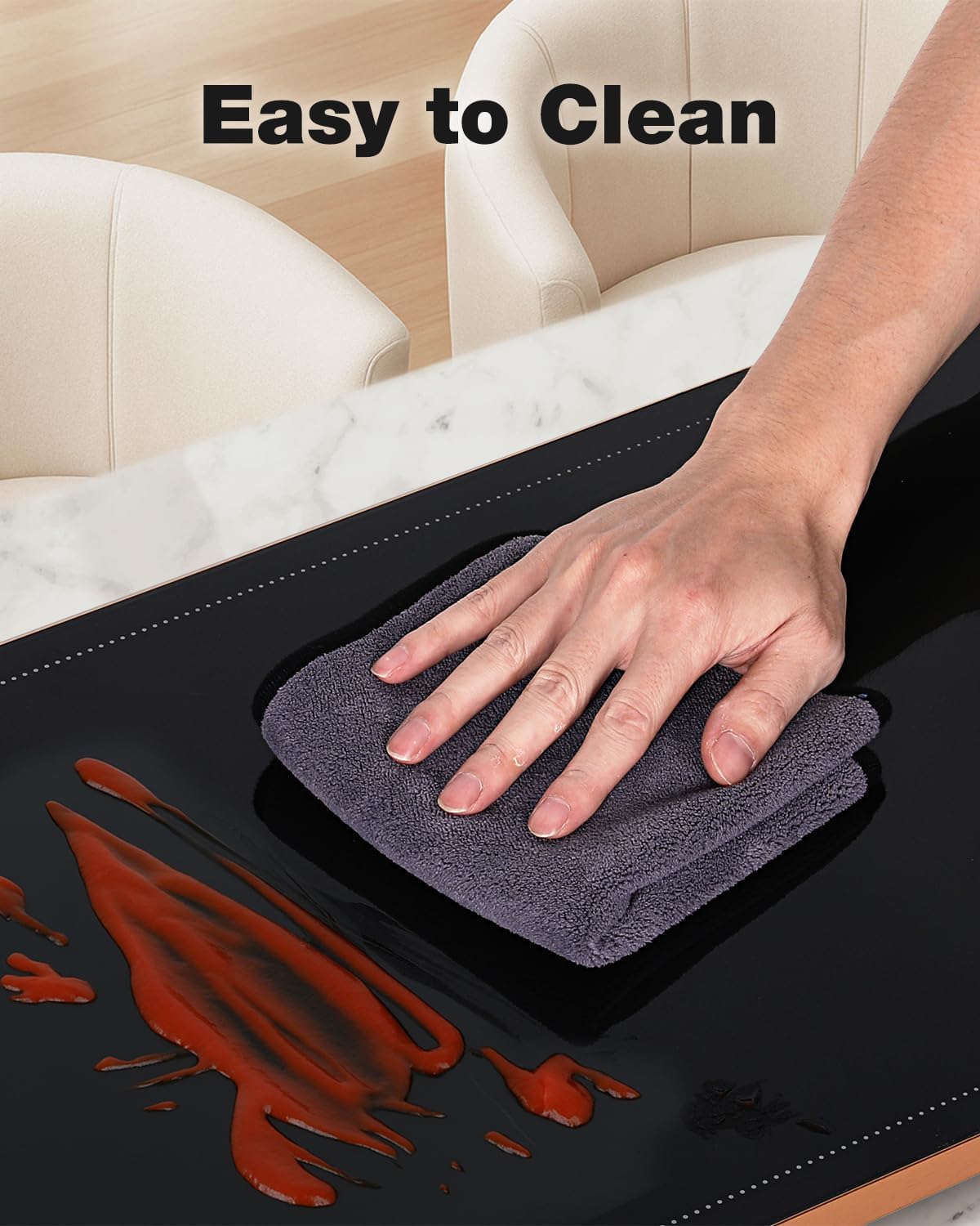 - EASY TO CLEAN: This buffet servers and warmers features a sleek black tempered glass surface with metal edging. It' s splash and stain-resistant, highly heat-resistant—and wipes clean in seconds. Both practical and stylish, it keeps your dining table looking refined at all times!