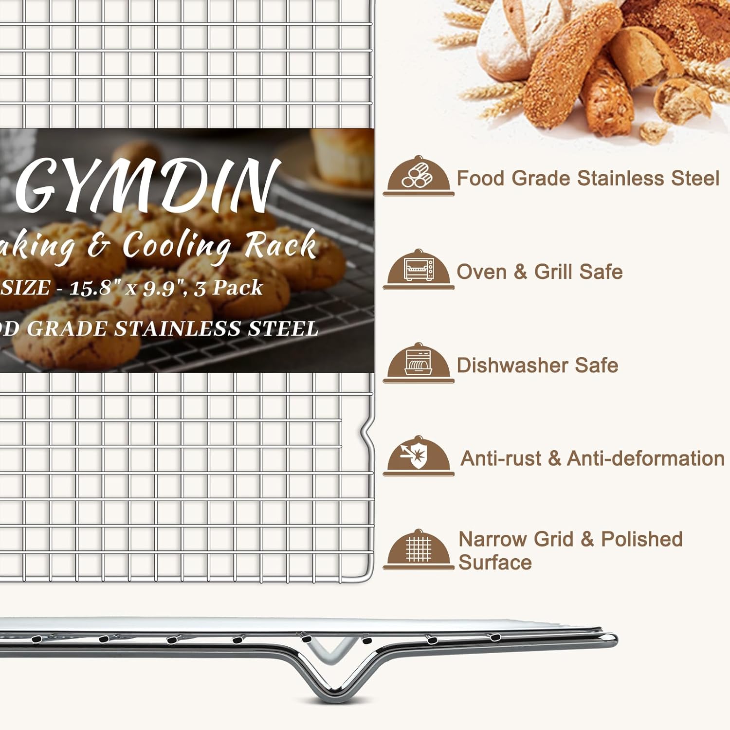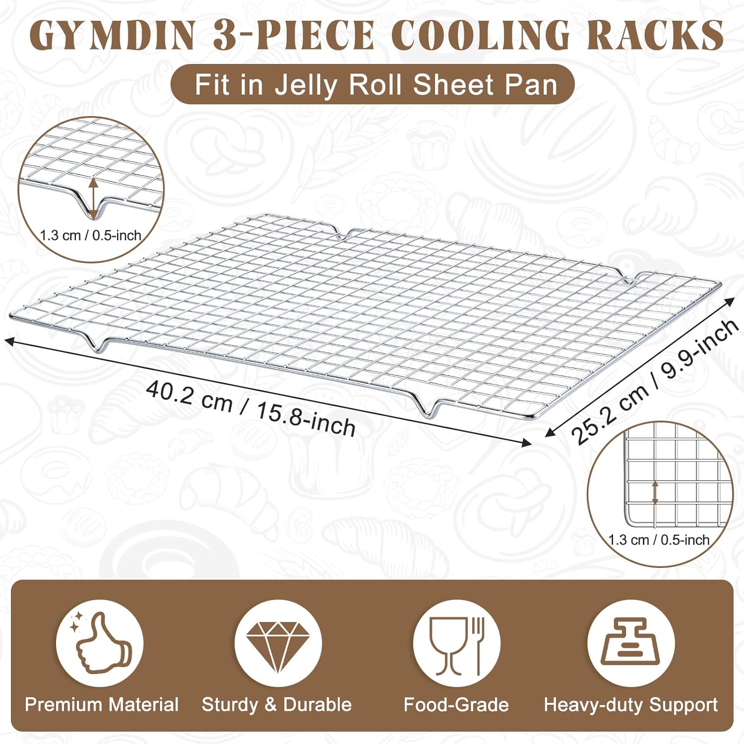 - Premium Stainless Steel Construction: Crafted from heavy-duty, food-grade stainless steel, our baking racks are built to last. The robust material ensures exceptional durability, standing up to daily kitchen demands while resisting warping, rust, and wear over time
