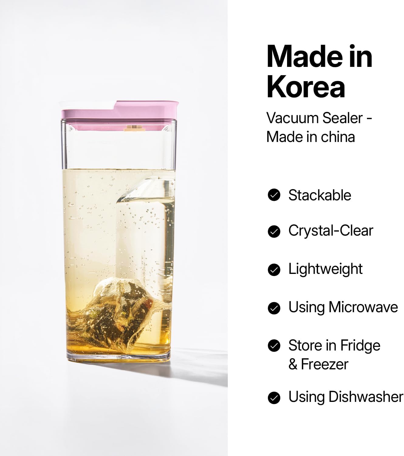 Premium Airtight Water Pitcher ROSE Pink lid, 1.4L(1.48qt) 1pcs, Airtight seal and Vacuum, Leak-free, BPA-free