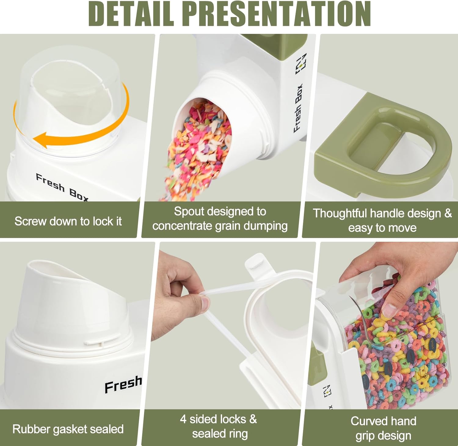 - Multifunctional Dry Food Storage Containers: Our cereal containers storage is designed for versatility, perfectly suited for storing not just cereal, but also beans, sugar, rice, nuts, snacks, pet food, candy, and even laundry beads β making it an essential addition to your pantry organization
