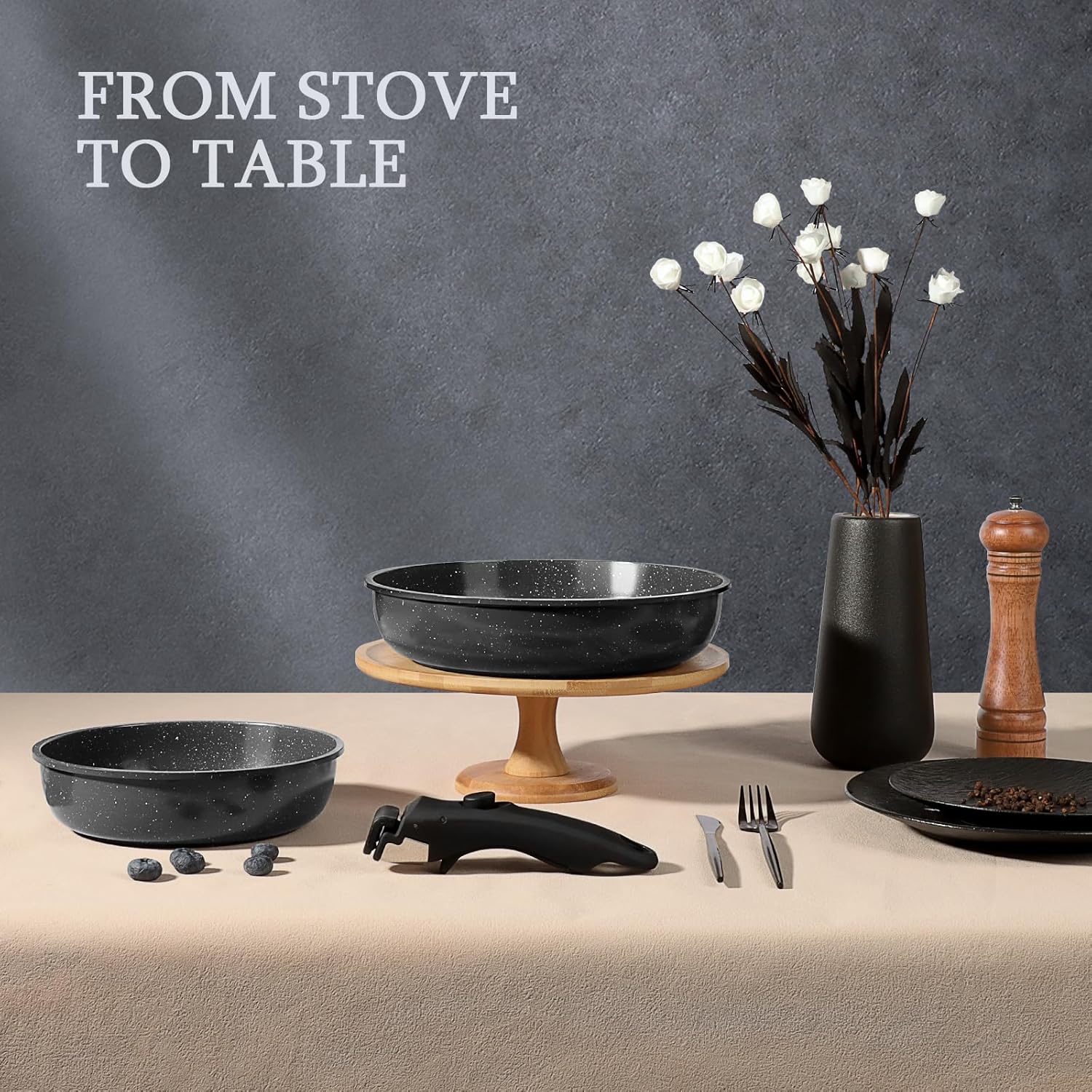 - Convenient Cookware Set - Removable handle for the ultimate versatility– go from all kinds of stoves to the oven, to the grill, to the fridge, and onto the dinner table in a click