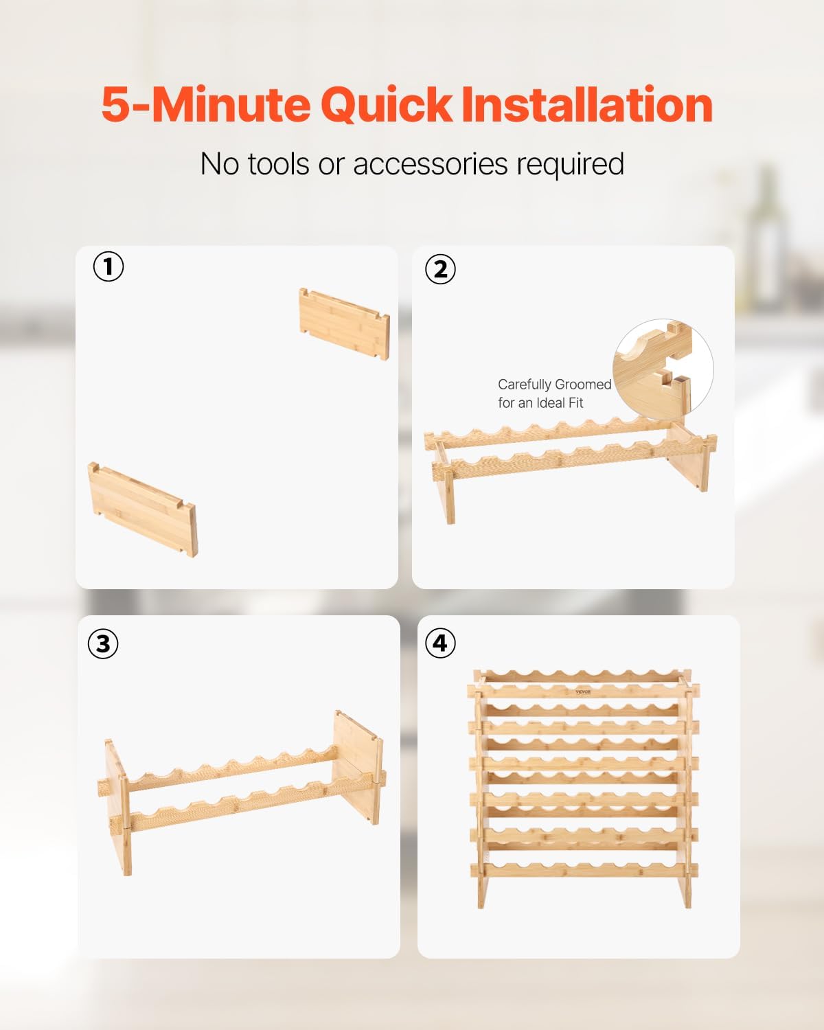 - Effortless Assembly: Assemble the wine storage rack in just 5 minutesโno tools, nails, or screws required. Ensure proper part alignment during assembly. For security, remove all bottles before repositioning the rack