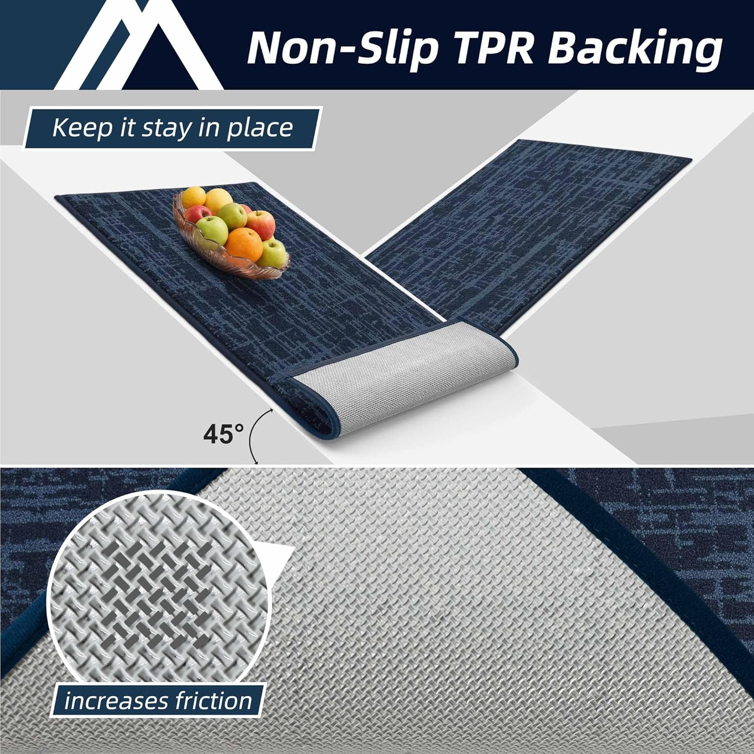- COSYHOMEER Anti Slip Kitchen Mat:The kitchen mats for floor are designed with a premium TPR non skid backing, ensuring that kitchen sink mats stay firmly on your floor.The non slip kitchen rugs prevent shifting or slipping during cooking or cleaning.The kitchen runner rugs ensure stability and safety for kids,pets, and elders.The kitchen rug can also protect the floor from your tableware breaking or damaging the floor
