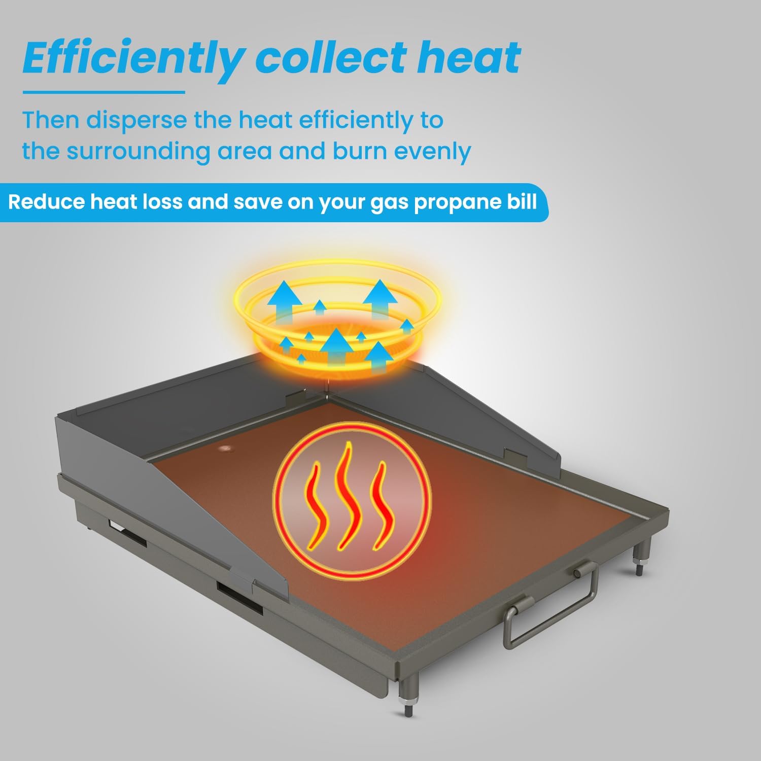 - Stovetop Flat Top Griddle: Designed with high sides to keep food secure, this stove top griddle insert allows you to cook multiple items simultaneously. A built-in grease hole directs excess oil to the grease pool for mess-free outdoor griddle, while the sturdy handles make it easy to move and adjust for effortless flat grill.