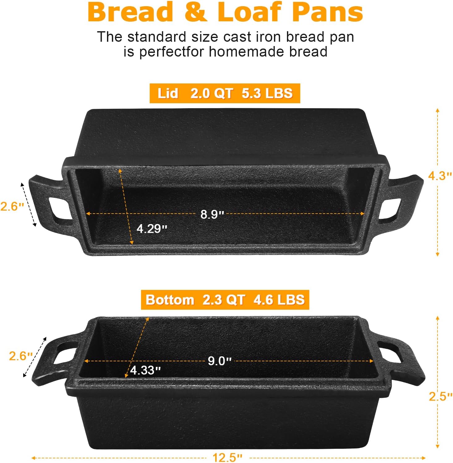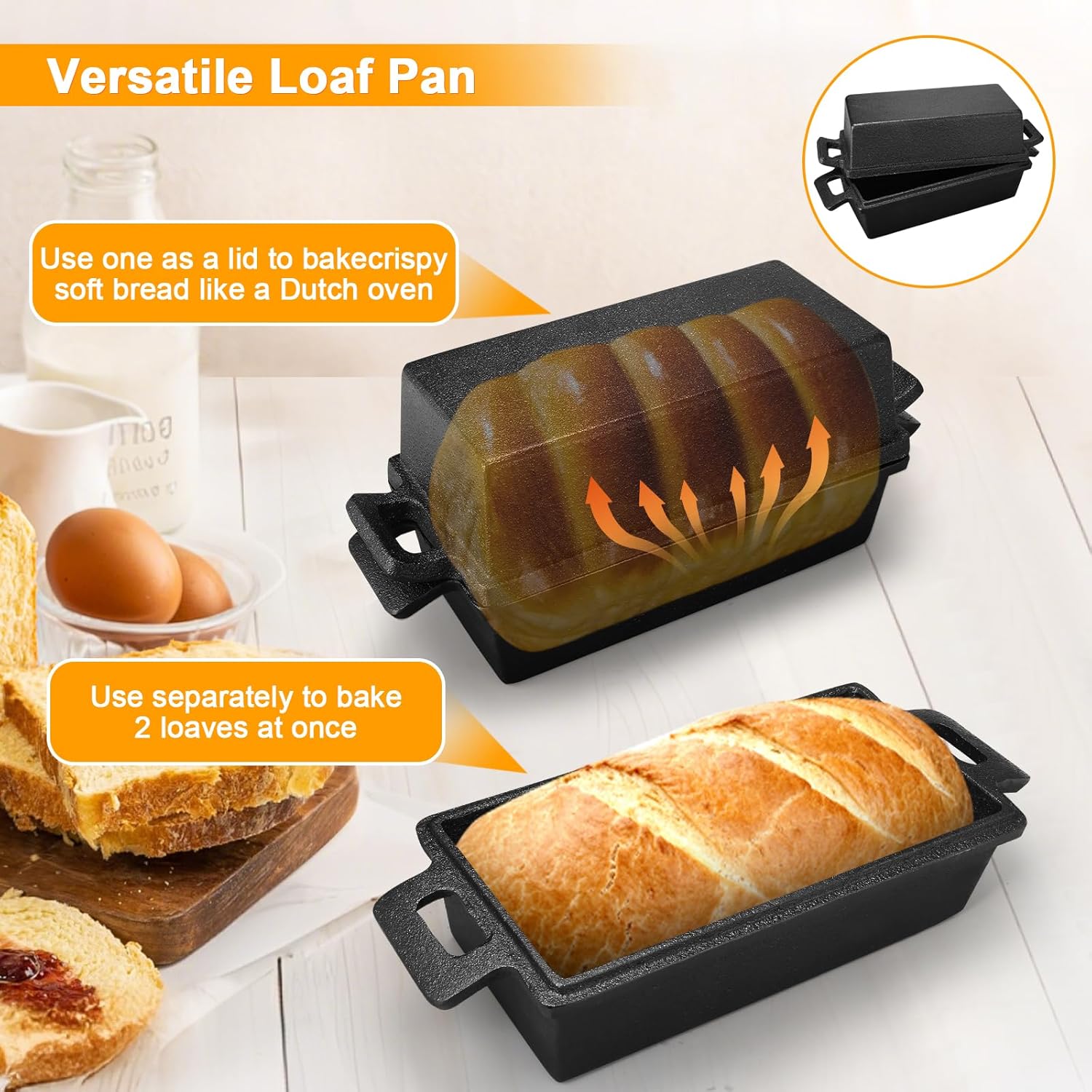 - Widely used:2 in 1 sets cast iron loaf pan not just for bread,This pan is versatile enough for meatloaf, pound cakes, and other baked goods,Safe on all cooking surfaces, including induction, and oven safe up to 500Β°F