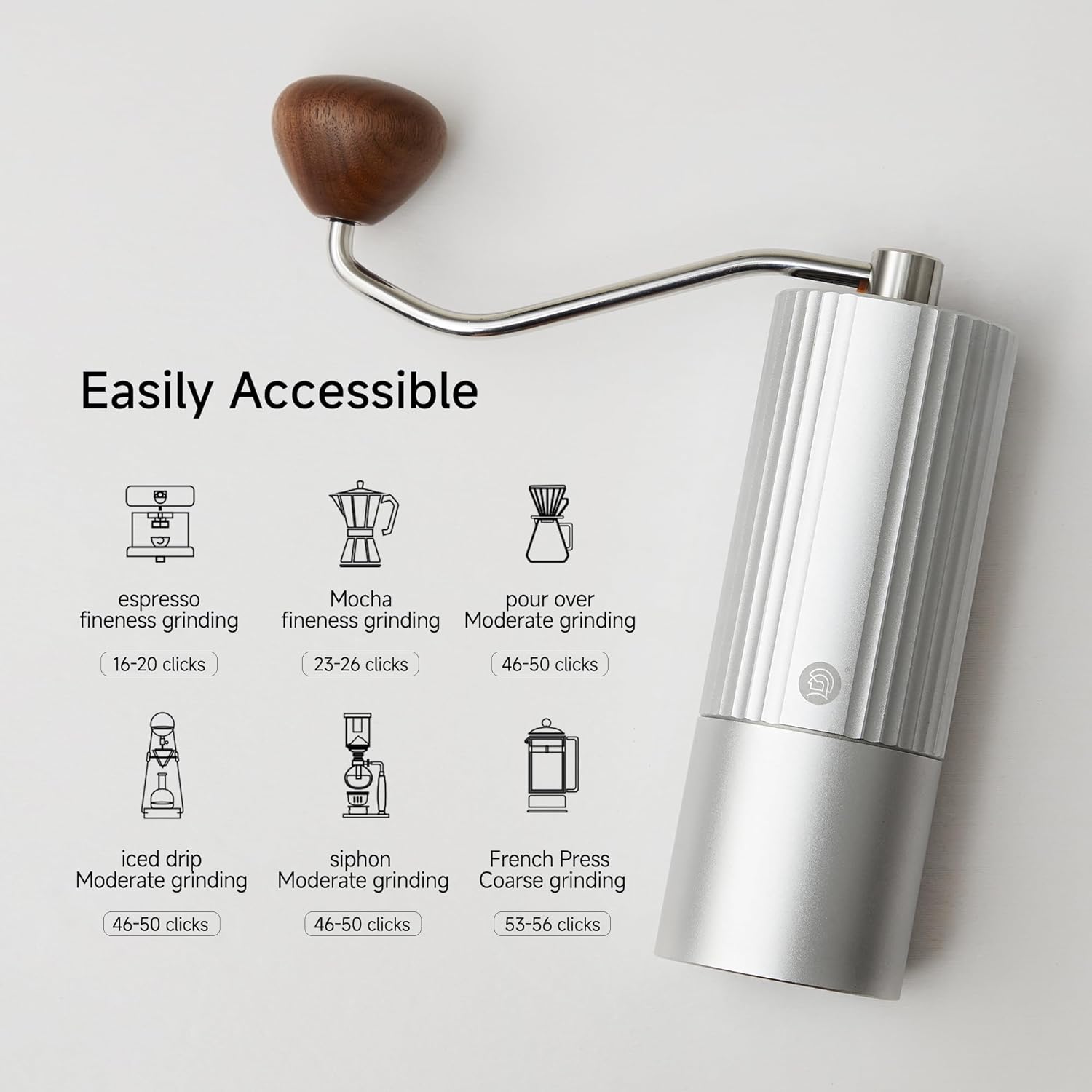 Z3 /Z3pro Coffee Bean Grinder, Hand Grinder with 6-Core CNC Stainless Steel Conical Burr,Double Bearing Positioning for Espresso,Pour Over,FrenchPress,Moka,Americano (Silver, Z3PRO)