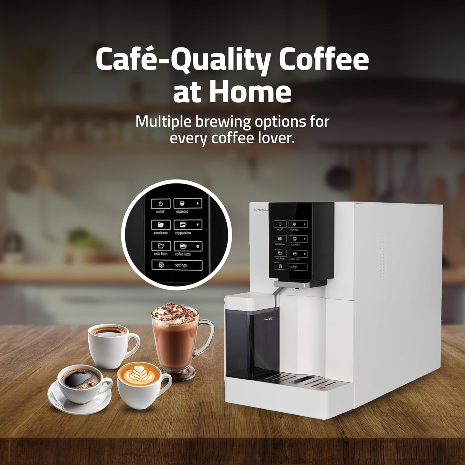 - Built-In Milk Frother for Lattes & Cappuccinos β This epsilon fully automatic espresso machine features a built-in milk frothing system. Simply add milk, and it will froth your milk to the perfect texture, allowing you to prepare lattes and cappuccinos with ease. You can customize the milk texture in three different levels.