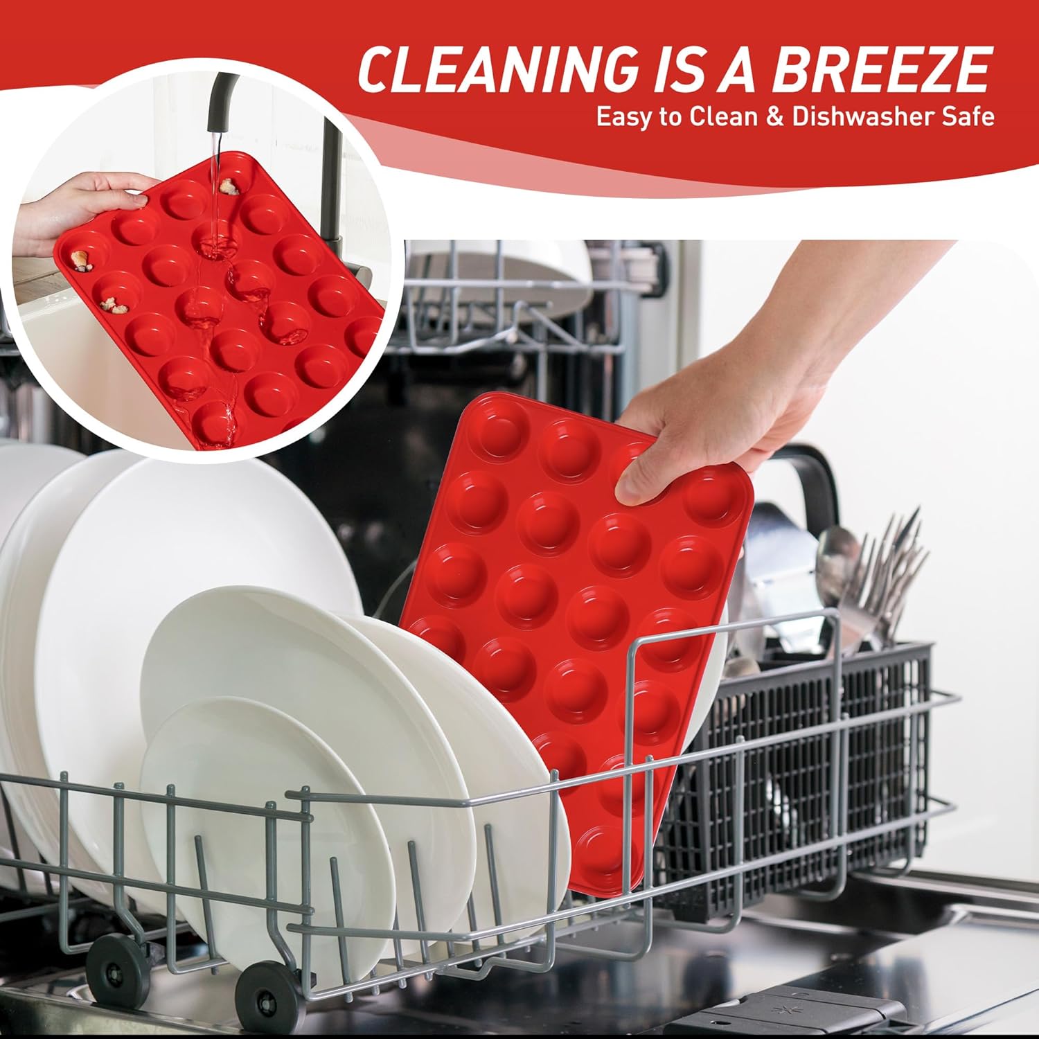 - 24-Cup Mini Size Cupcake Pan: This size baking pan measures 13.4" x 8.9" with a convenient 4x6 layout, letting you bake a full dozen cupcakes, muffins, or pancakes in one go. Ideal for both special occasions and everyday use, the evenly spaced cups promote uniform baking for perfect results. Each cup features a 1.8" top diameter, 1.2" base, and 0.7" depth to create evenly portioned treats. Available in various colors, the cupcake pan is an perfect choice to any baking enthusiasts.