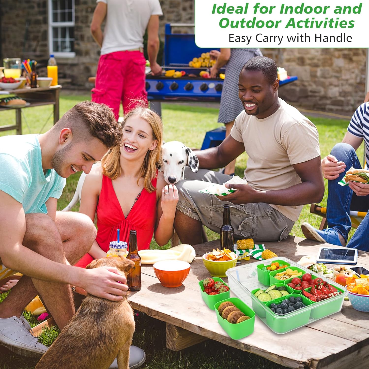 shopwithgreen Snackle Box Charcuterie Container, Divided Serving Tray with Lid and Handle for Party, Veggies, Fruit, Nuts, Food Tray Platter Snack Box Container for Entertaining, Picnic, Green