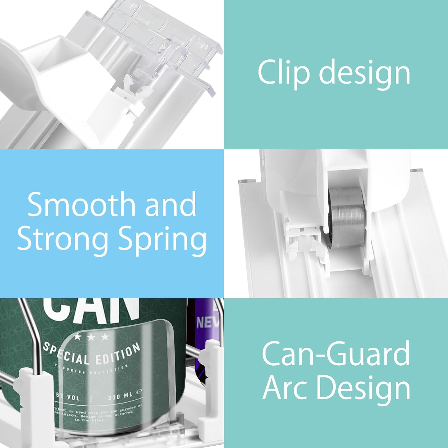 - Unique Design: The can organizer for pantry has been completely upgraded to automatically replenishable. The curved push plate fits the bottle body, so the beverage is not fall over when pushed, and the bottle body is not easily scratched. The innovative locking function allows the beverage to be properly placed and pushed even if there are less than 5 cans of beverage. With the upgraded spring push, the whole process is smooth, convenient and reliable to use.