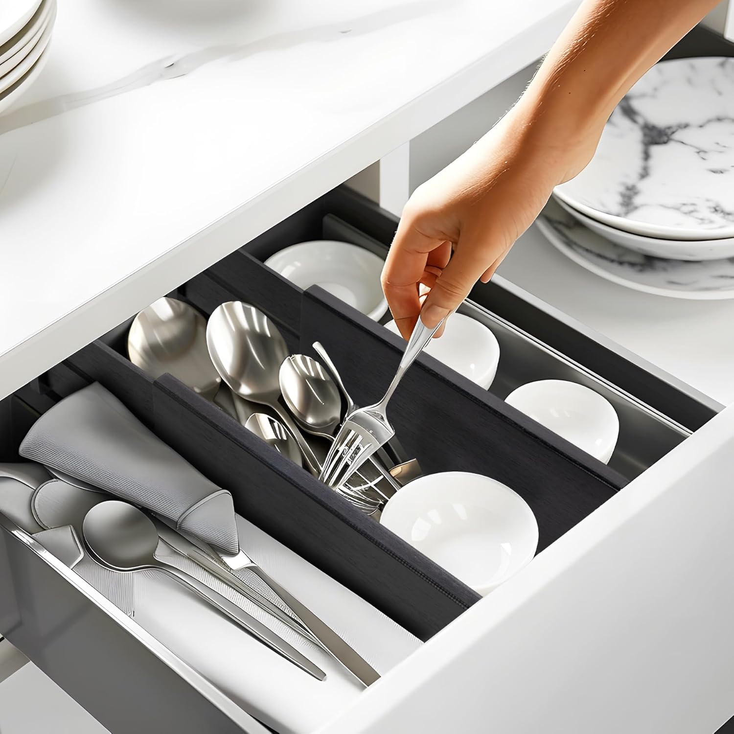 - Easy Installation & Removal: The expandable drawer divider features a built-in spring that keeps it securely in place. It's easy to adjust, so you can customize it to fit your changing needs. Ideal for sturdy drawers, ensuring your items stay organized