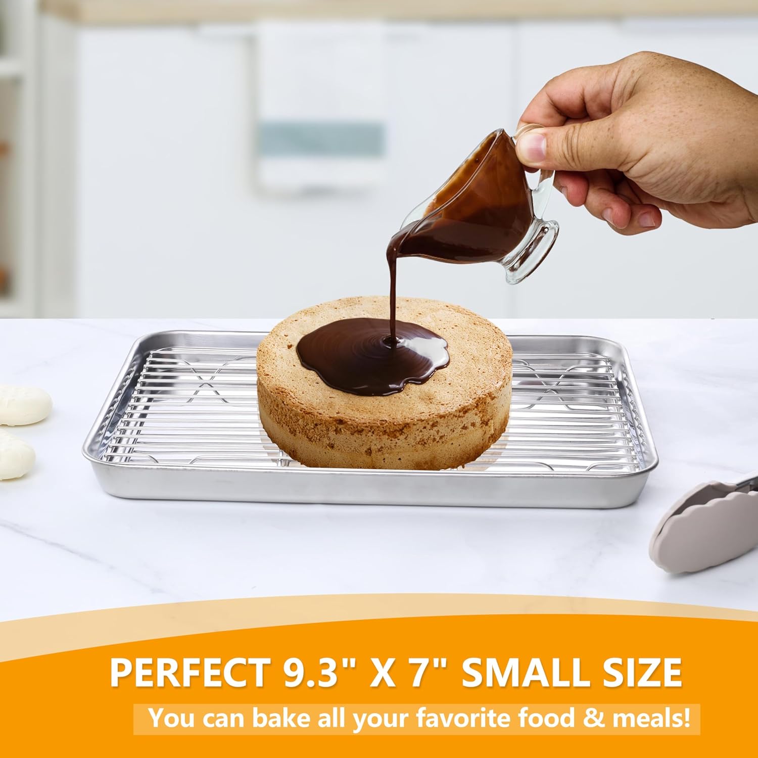 Homikit Baking Sheet with Wire Rack, 9 x 7 Inch Stainless Steel Cookie Sheets for Baking, Small Baking Pan with Cooling Rack, Nonstick Metal Mini Toaster Oven Bacon Tray, Rust Free & Dishwasher Safe