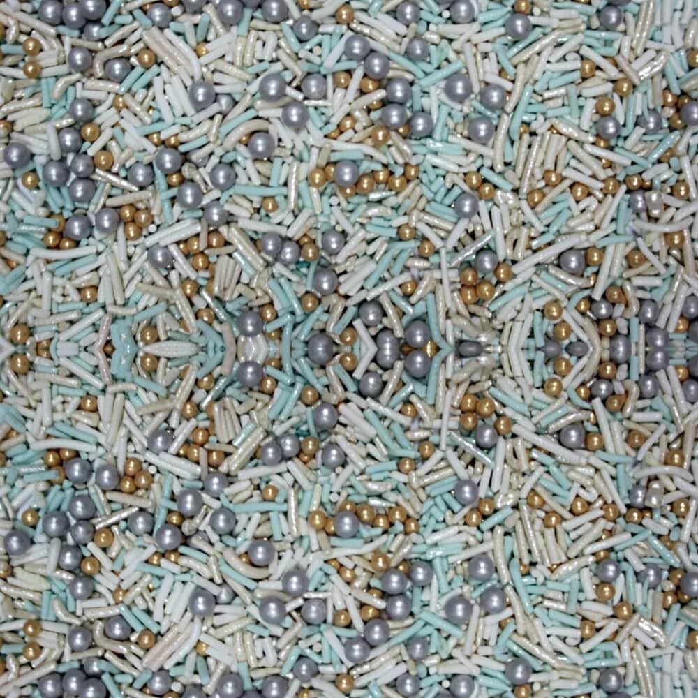 Confect Edible Sprinkles Mix – Silver & Gold Sugar Pearls with Mint and White Jimmies – Cake Decorating Toppings for Cupcakes, Cookies & Desserts | Vegan, Gluten-Free, Soy-Free, Dairy-Free, Palm Oil-Free – 4.2 Oz