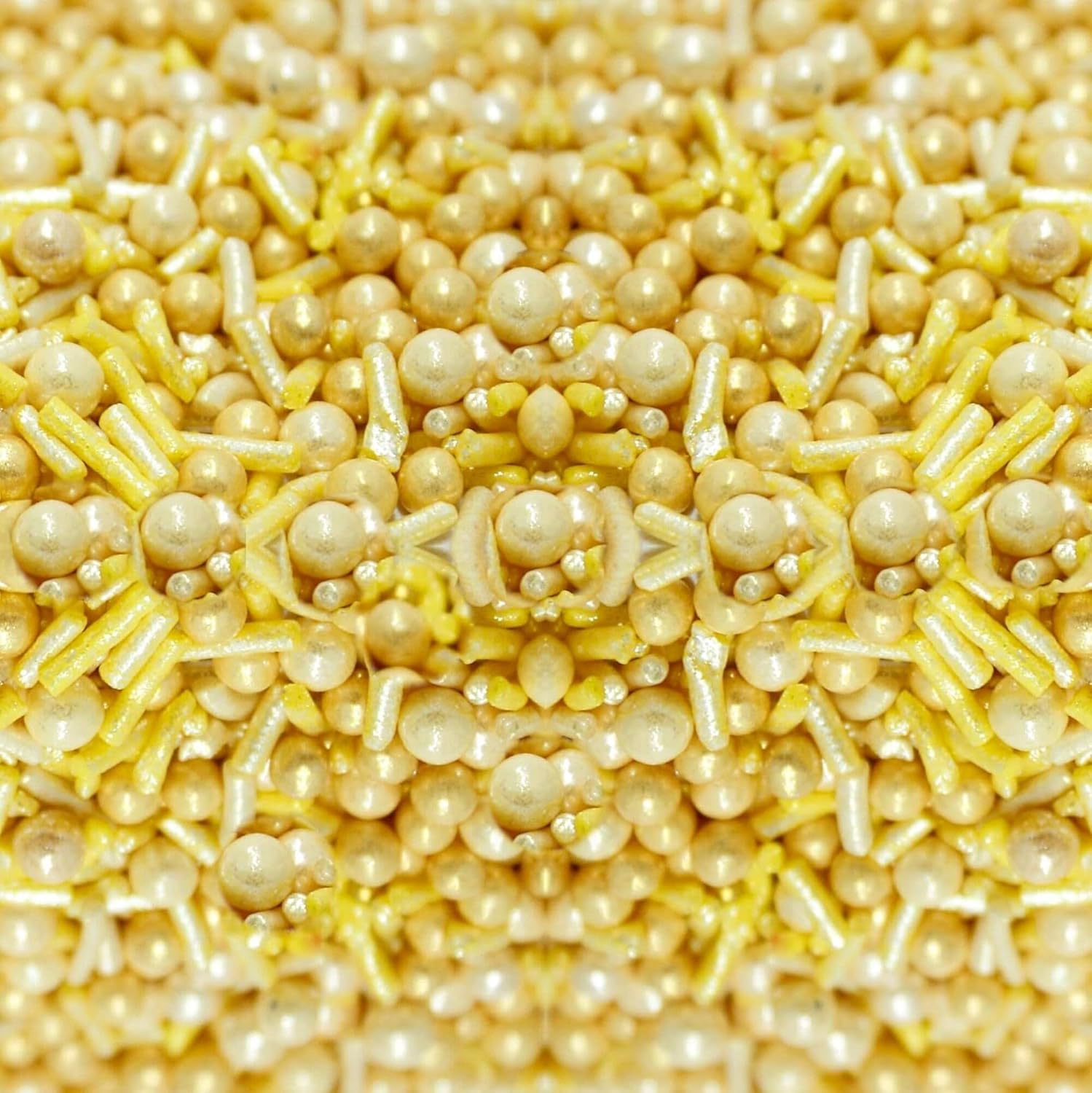 Confect Gold Pearl & Rod Sprinkles Mix – Metallic Edible Pearlized Sugar Balls for Cake Decorating, Cupcakes & Desserts | Vegan, Gluten-Free, Nut-Free, Soy-Free, Dairy-Free, Palm Oil-Free- 4.2 Oz