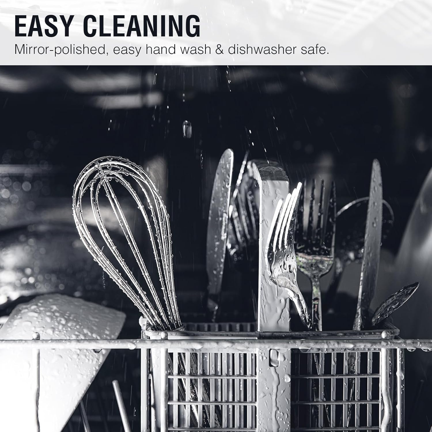 - EASY CLEAN - This stainless steel material is easy to clean, suitable for both hand washing and dishwasher use, ensuring your tools stay shiny without needing harsh abrasives.
