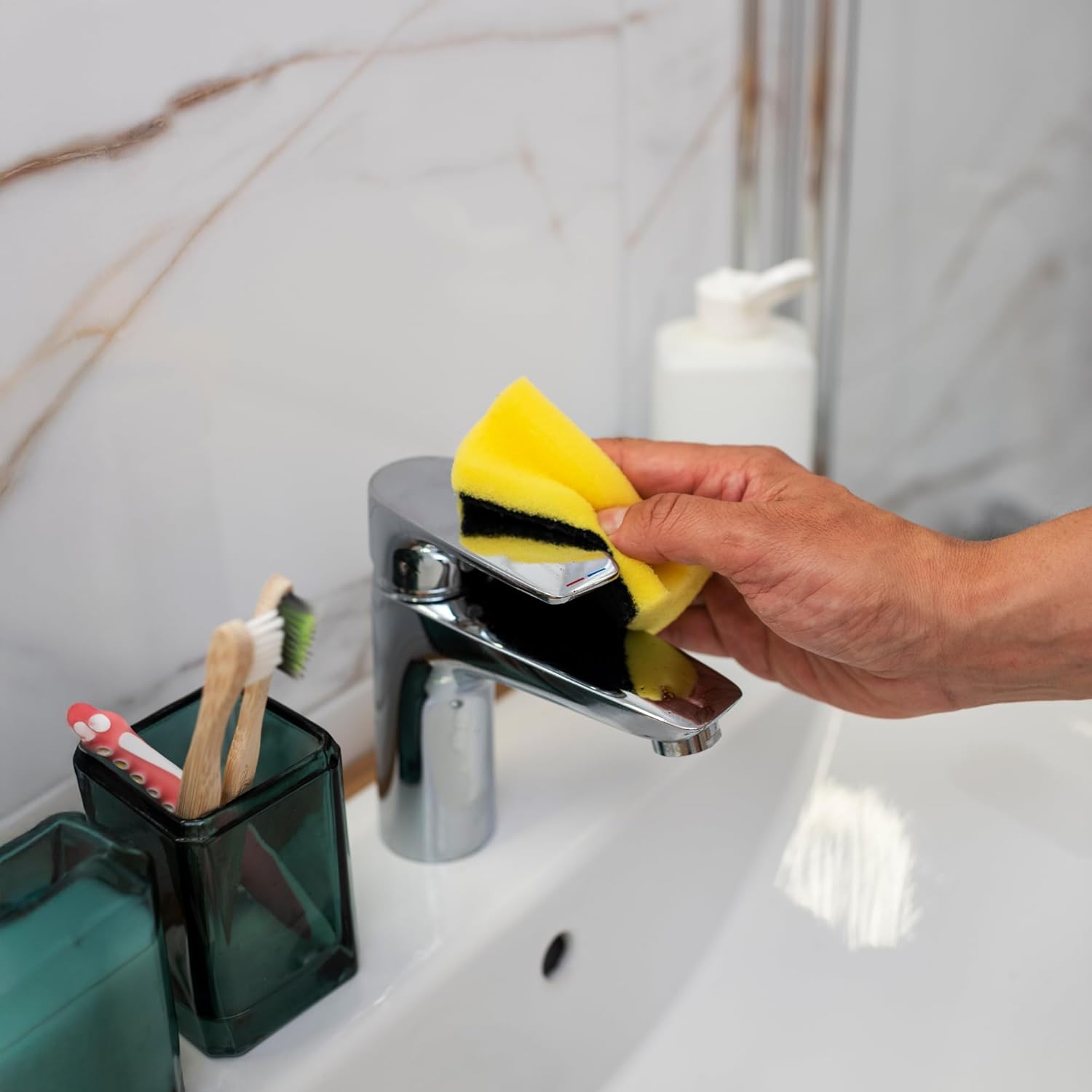 - β π π¨ππ§π π£π¨π₯π£π’π¦π! - Small Household Sponges Perfect for Washing Dishes, Kitchen, Bathroom, Bathtub, Tiles, Car Wash, Garden, Dog and Cat Bowls, Scrub Pad Cleans Tough Dirty from Pots and Pans, Reverse Non-Scratch Sponge Gentle Cleans and Wipes and will not Scratch Your Delicate Sink, Stove and Counters!