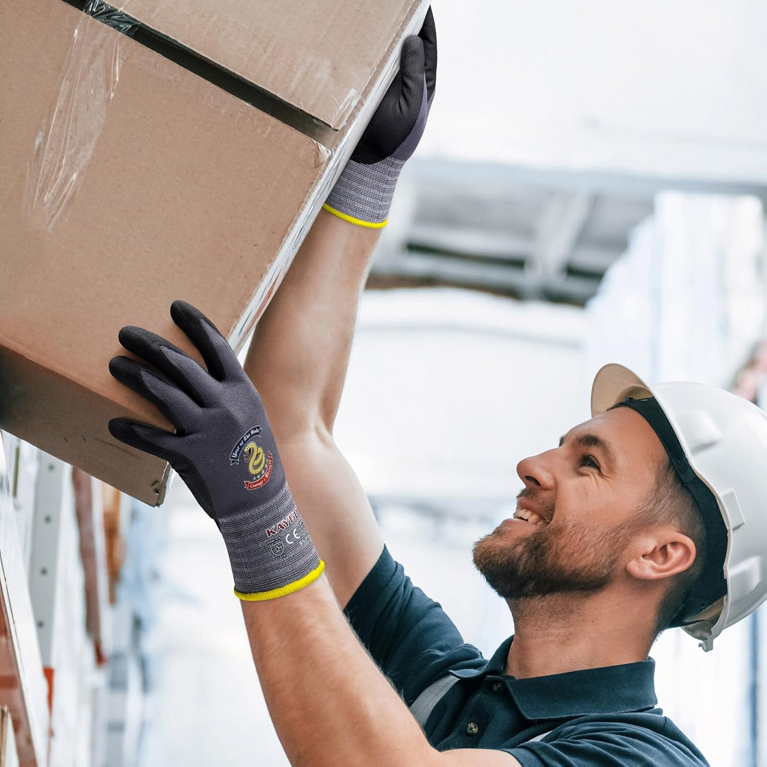 KAYGO Safety Work Gloves MicroFoam Nitrile Coated, 3 Pairs KG18NB,Seamless Knit Nylon Glove for Men and Women, Ideal for Automotive,Warehouse,Construction (XL,Gray)